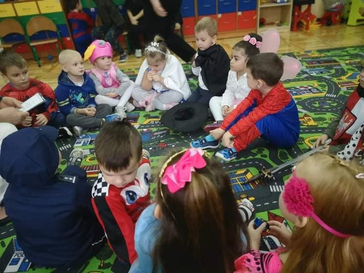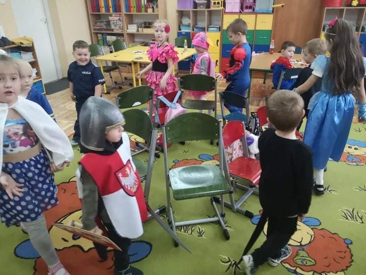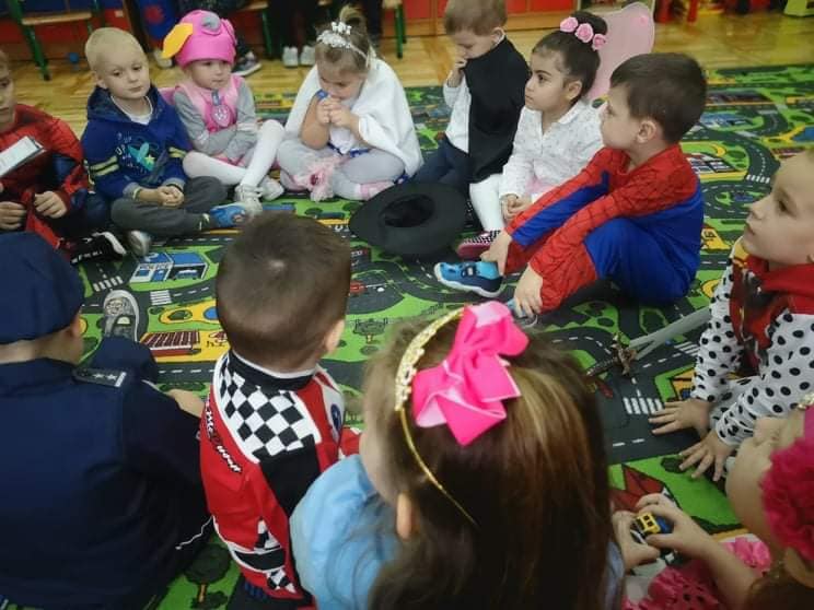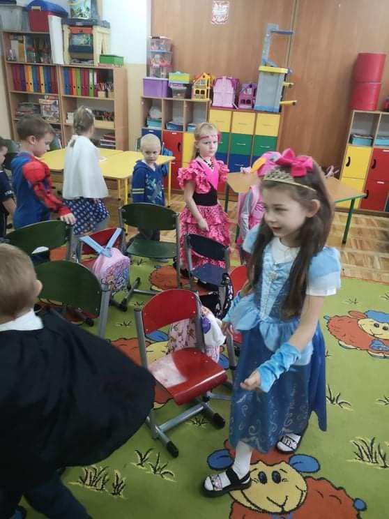 Dzieci przebrane w piękne bajkowe stroje wzięły udział w zabawach związanych z bajkowymi postaciami, rozwiązywały zagadki, układały puzzle, wykonywały zadania, bawiły się w teatr. To spotkanie sprawiło dzieciom wiele radości. Był to dzień pełen wrażeń.