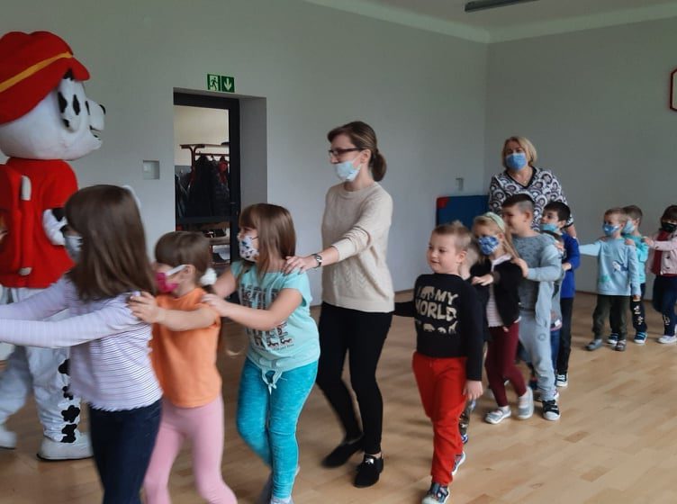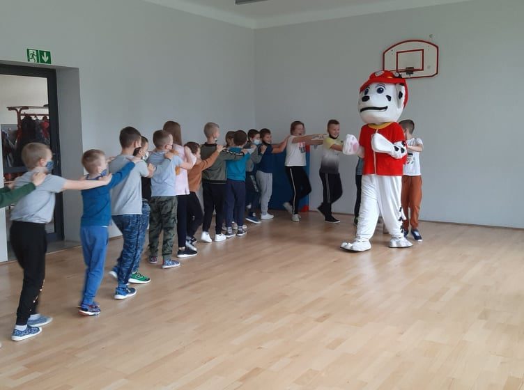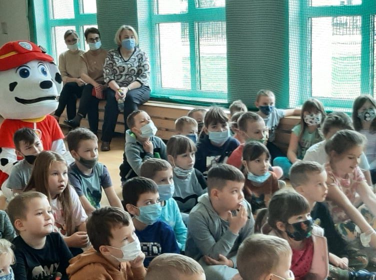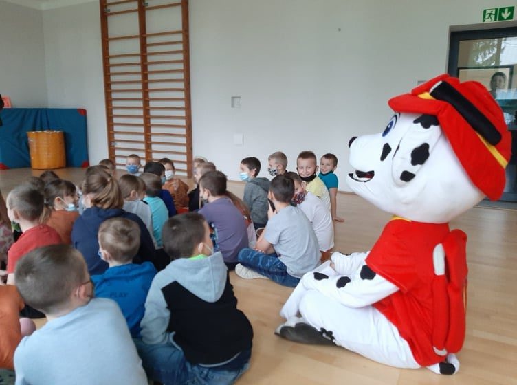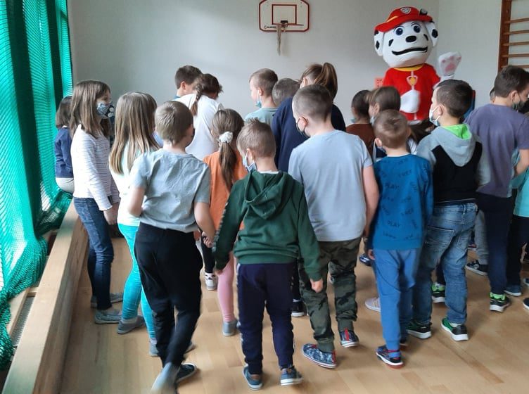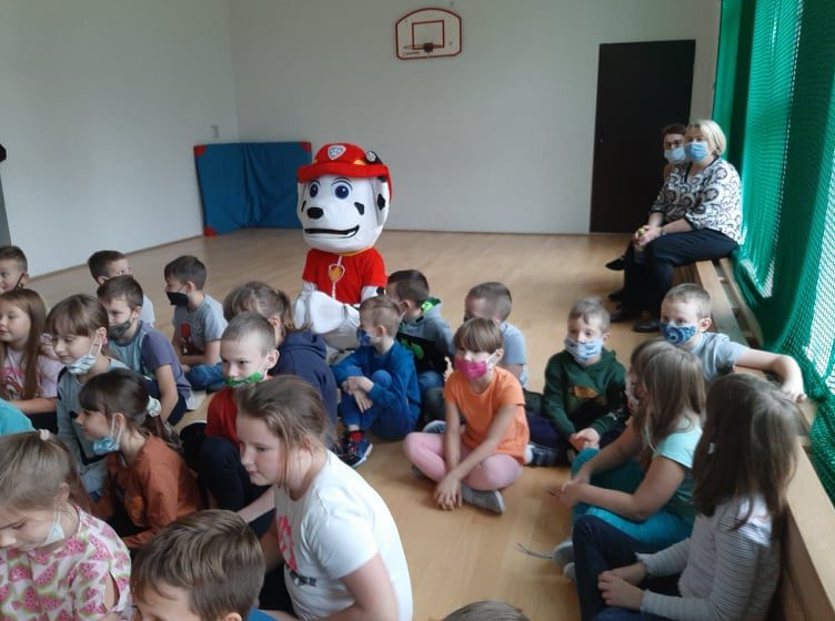 Dzieci z oddziału przedszkolnego i klas I – III Publicznej Szkoły Podstawowej im. Ks. Jerzego Popiełuszki w Zielonej ten szczególny dzień spędziły w towarzystwie zupełnie wyjątkowego gościa. Był nim Marshall z „Psiego Patrolu”. Wizyta ta zachwyciła wszystkich uczestników spotkania.