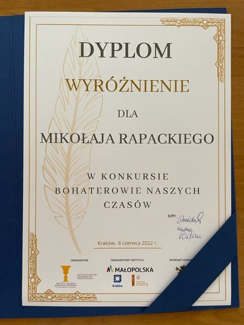 Mikołaj Rapacki wyróżniony w Konkursie Literackim „Bohaterowie naszych czasów”