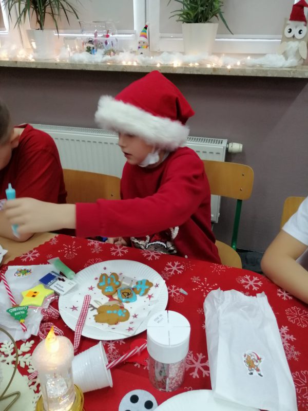 W klasie pojawił się nieco wcześniej i wraz ze swoimi pomocnikami zamienił salę w magiczne miejsce, które przypominało chatę Mikołaja, dzieci otrzymały w tym dniu upominki, zdobiły pierniczki oraz zrobiły piękny tradycyjny łańcuch. Ach, co to był za dzień! Z pewnością na długo pozostanie w pamięci uczniów.