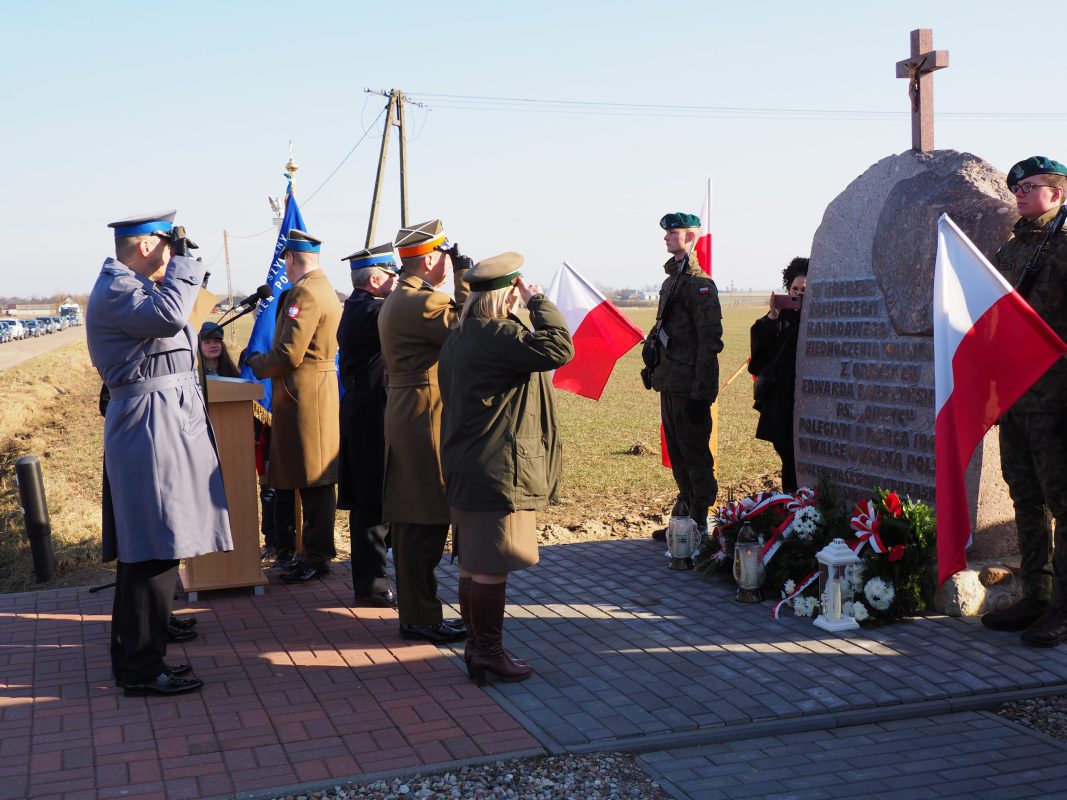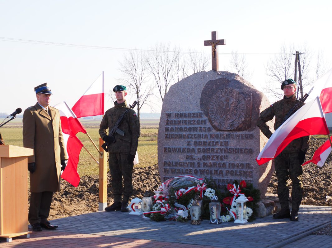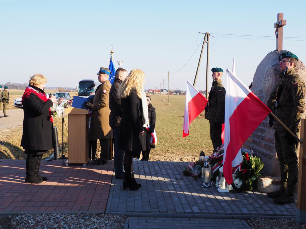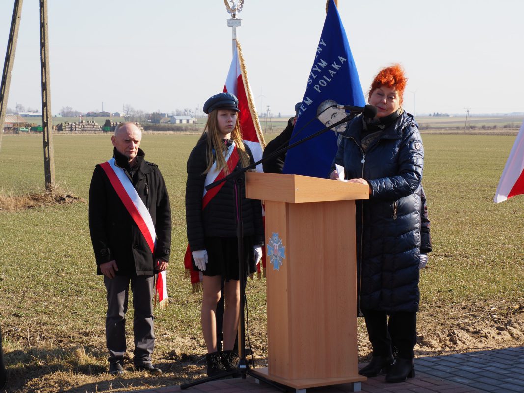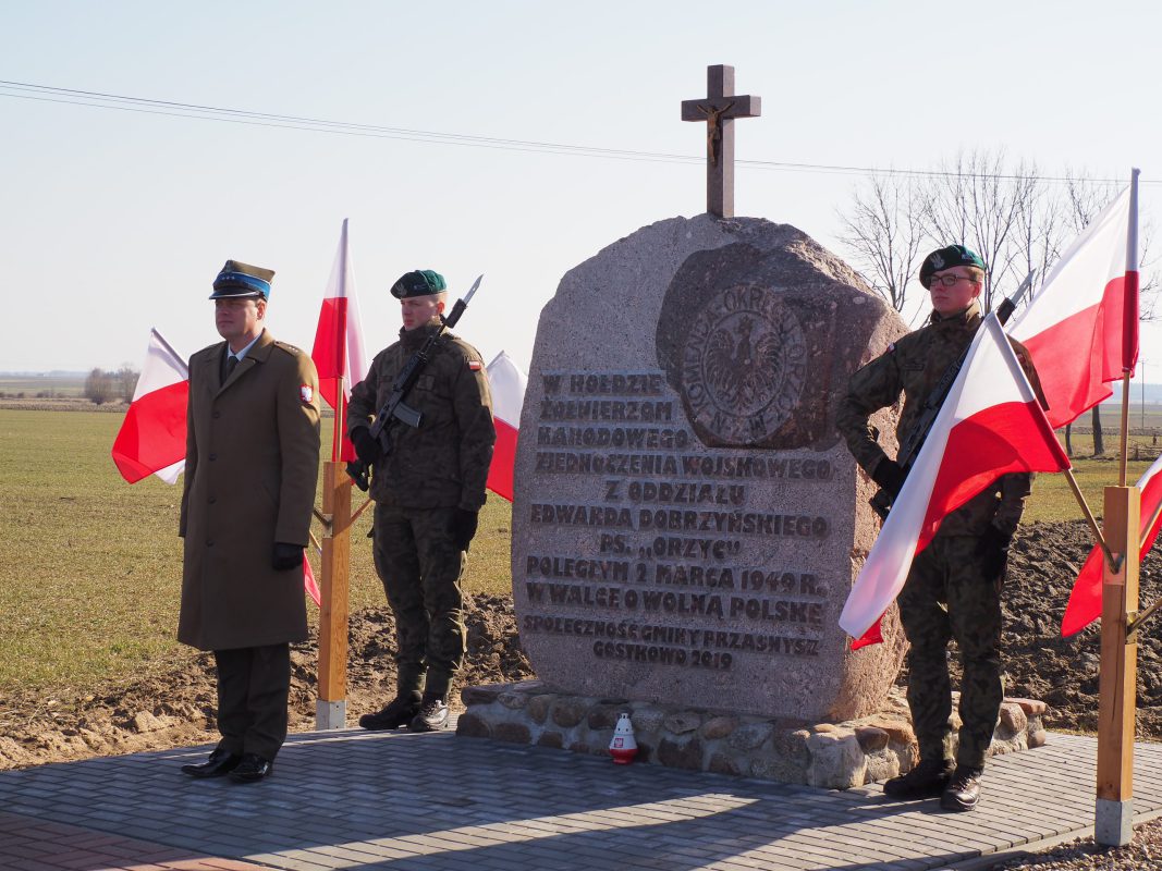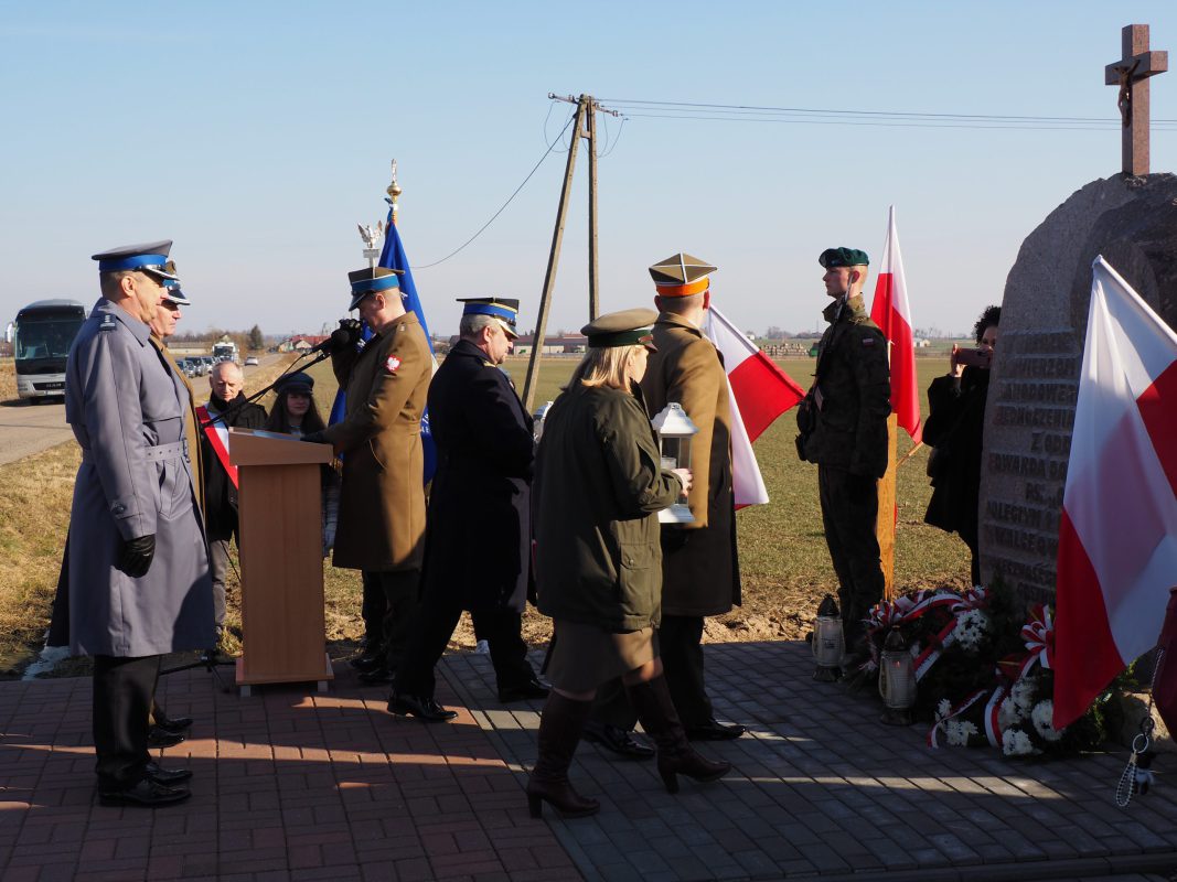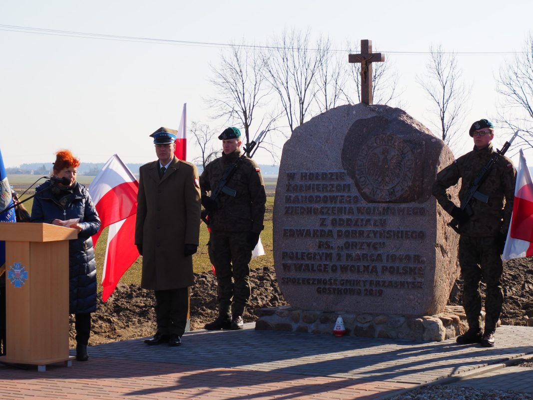 Wójt Gminy Przasnysz, Grażyna Wróblewska przywitała wszystkich gości i przybliżyła im wydarzenia, do których doszło 2 marca 1949 roku. Miejsce, w którym odbyła się druga część obchodów nie było przypadkowe. To właśnie tam zostali otoczeni i zamordowani przez służby bezpieczeństwa żołnierze patrolu Edwarda Dobrzyńskiego „Orzyca”. Poseł Anna Cicholska odczytała list intencyjny od Prezesa Rady Ministrów pana Mateusza Morawieckiego, który był adresowany do uczestników tejże uroczystości.