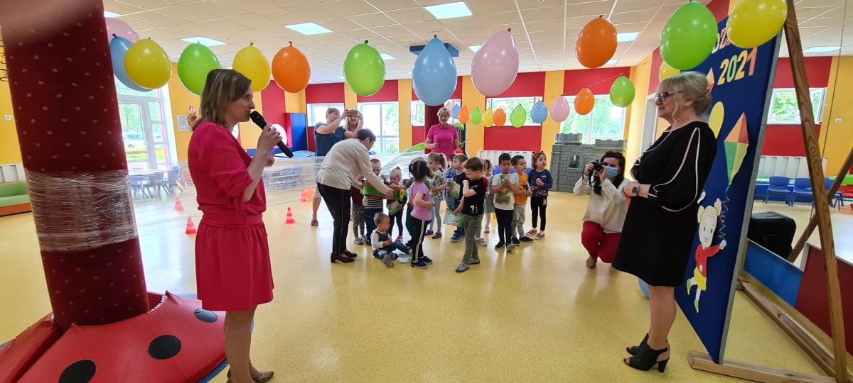 Burmistrz Beata Szczepankowska oraz wiceburmistrz Regina Grzelak wraz ze współpracownikami zrobili dziś niespodziankę naszym dzieciom i odwiedzili je w Przedszkolu Samorządowym w Chorzelach, Oddziale Przedszkolnym w Łazie, Żłobku oraz Klubiku Dziecięcym.