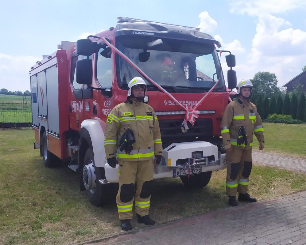 Nowy samochód ratowniczo – gaśniczy został uroczyście poświęcony i przekazany druhom z OSP Węgra