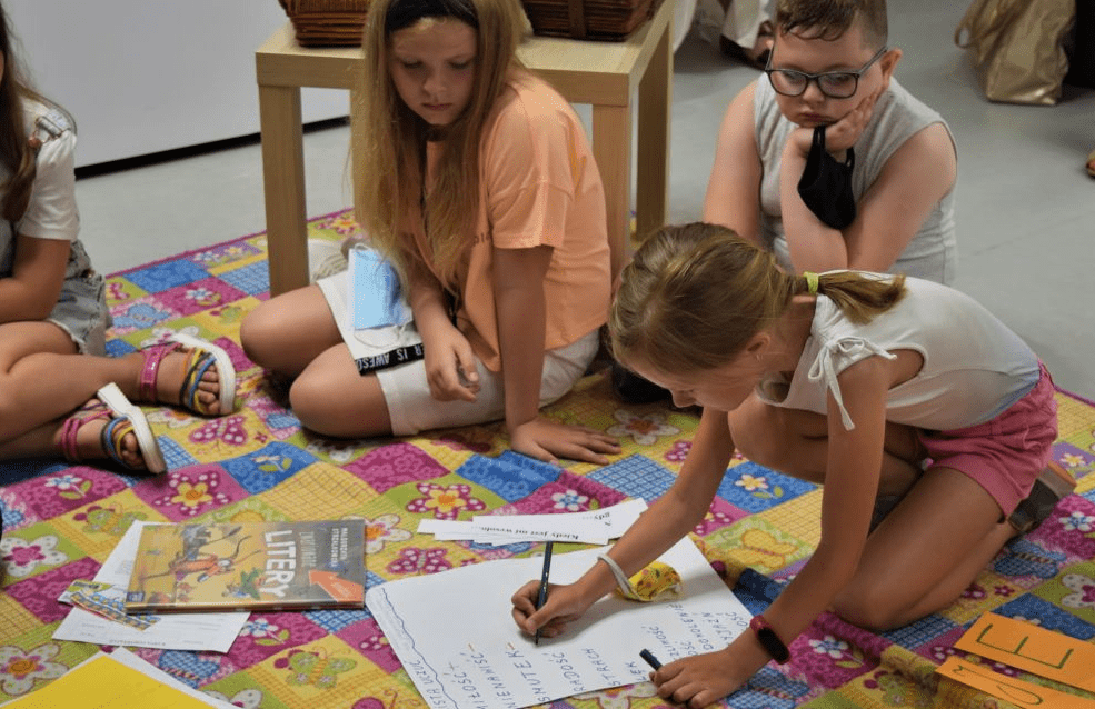 Dzieci pokazywały jak wyrażają swoją złość i w jaki sposób próbują ją pokonać ( m.in. tupanie , czytanie, liczenie od 1-10 oraz głębokie wdechy). Następnie wysłuchały wiersza M. Strzałkowskiej ,, Burza”. Wypełnialiśmy wspólnie kartę pracy, która przedstawiała różne rodzaje uczuć. Uczestnicy decydowali, które emocje są przyjemne a które są nieprzyjemne. Na zakończenie zajęć, każdy uczestnik zaprojektował medal, taki jaki chciałby dostać. Dziękujemy klasie II za odwiedziny oraz wychowawczyni Pani Marcie Waleszczak.