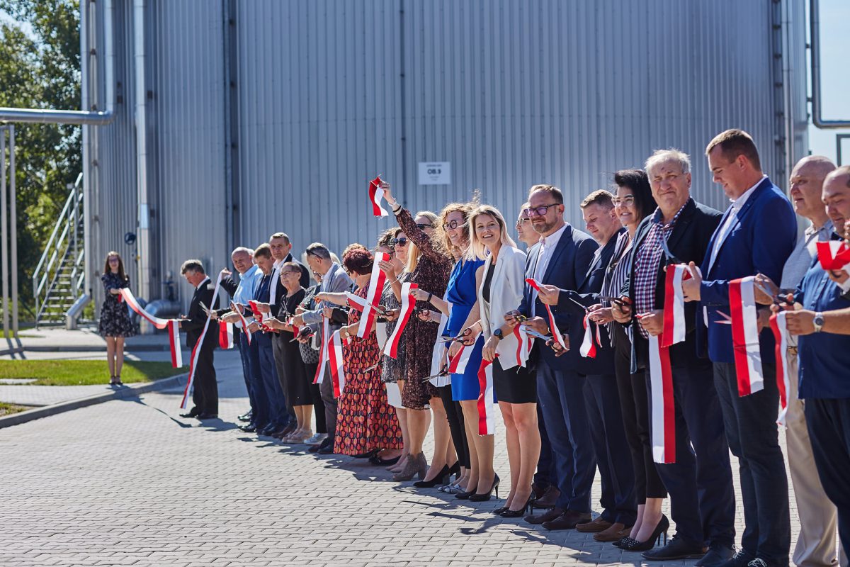 Następnie zaproszono zgromadzonych gości do symbolicznego przecięcia rekordowo długiej wstęgi i wspólnego zdjęcia. Na zakończenie wszyscy uczestnicy spotkania mieli wyjątkową okazję zwiedzić teren inwestycji, po której oprowadzał Pan Maciej Pietraszek – Kierownik Projektu.