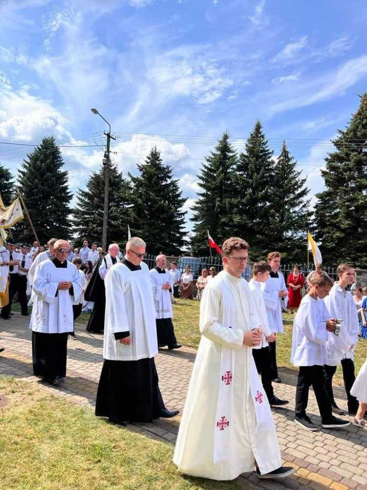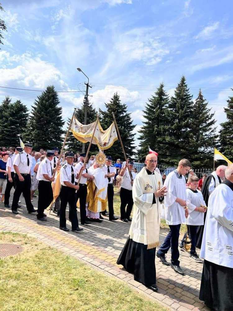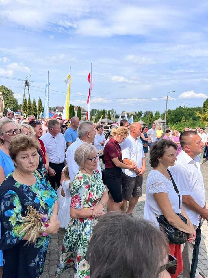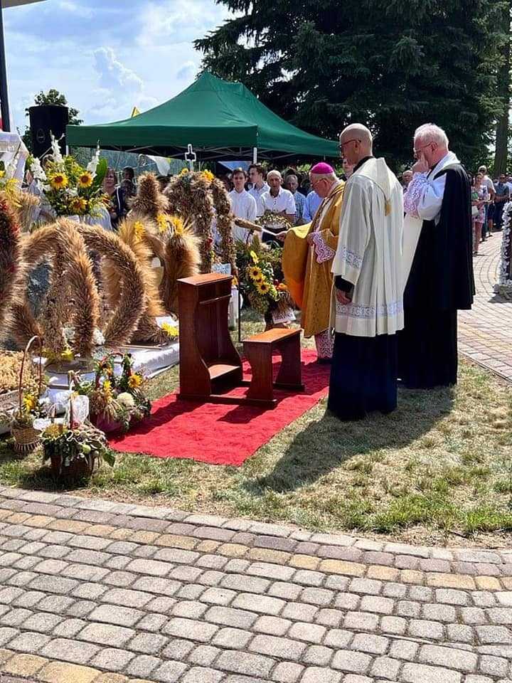 W kazaniu nawiązał także do 102. rocznicy Cudu nad Wisłą, w czasie której „objawiła się Boża pomoc, abyśmy byli narodem ludzi wolnych”. W czasie liturgii zostały poświęcone dożynkowe wieńce, kwiaty i zioła. Uroczystą liturgię zakończyła procesja eucharystyczna wokół kościoła. Oprawę muzyczna zapewniła Miejska Młodzieżowa Orkiestra Dęta z Chorzel.