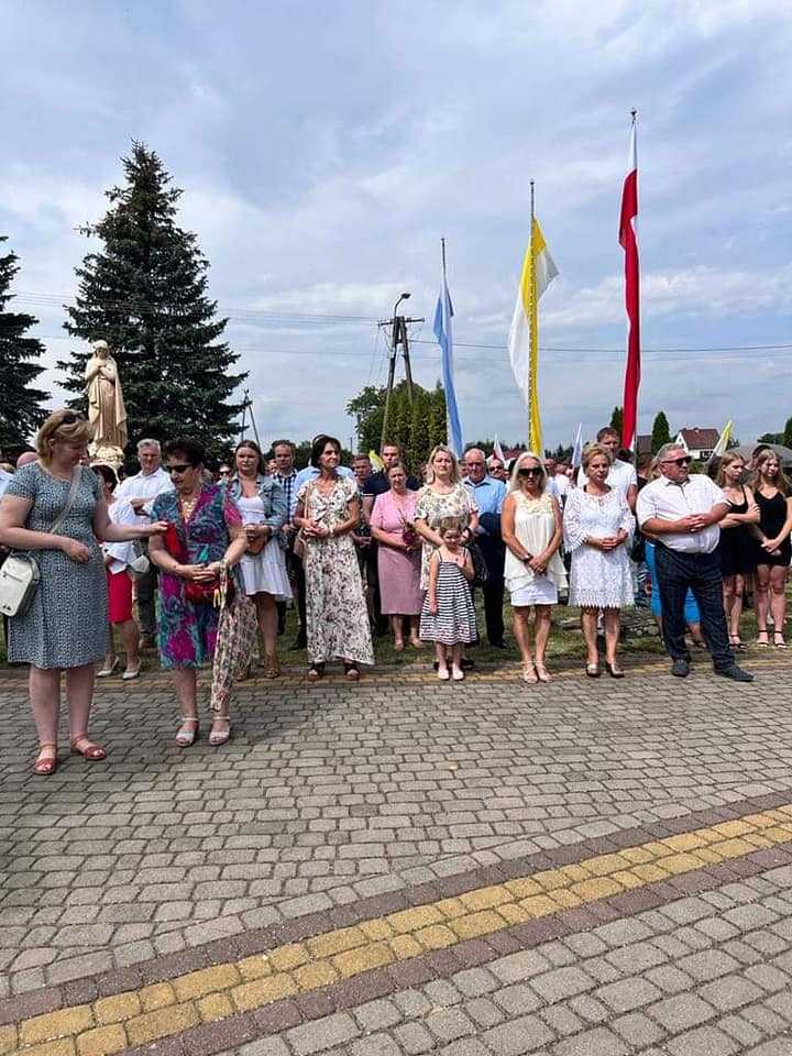 Wiernych, którzy na mszę święta odpustową przybyli, nawet z Krzynowłogi Małej i Janowa, witał nowy duczymiński duszpasterz ksiądz Grzegorz Ostrowski.