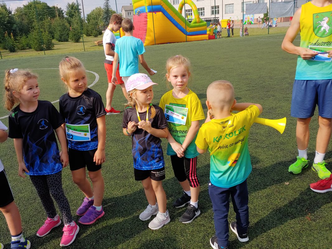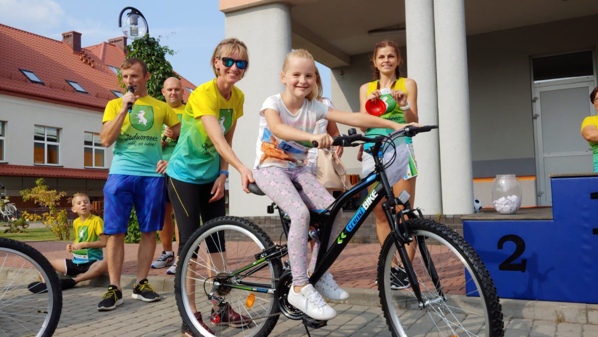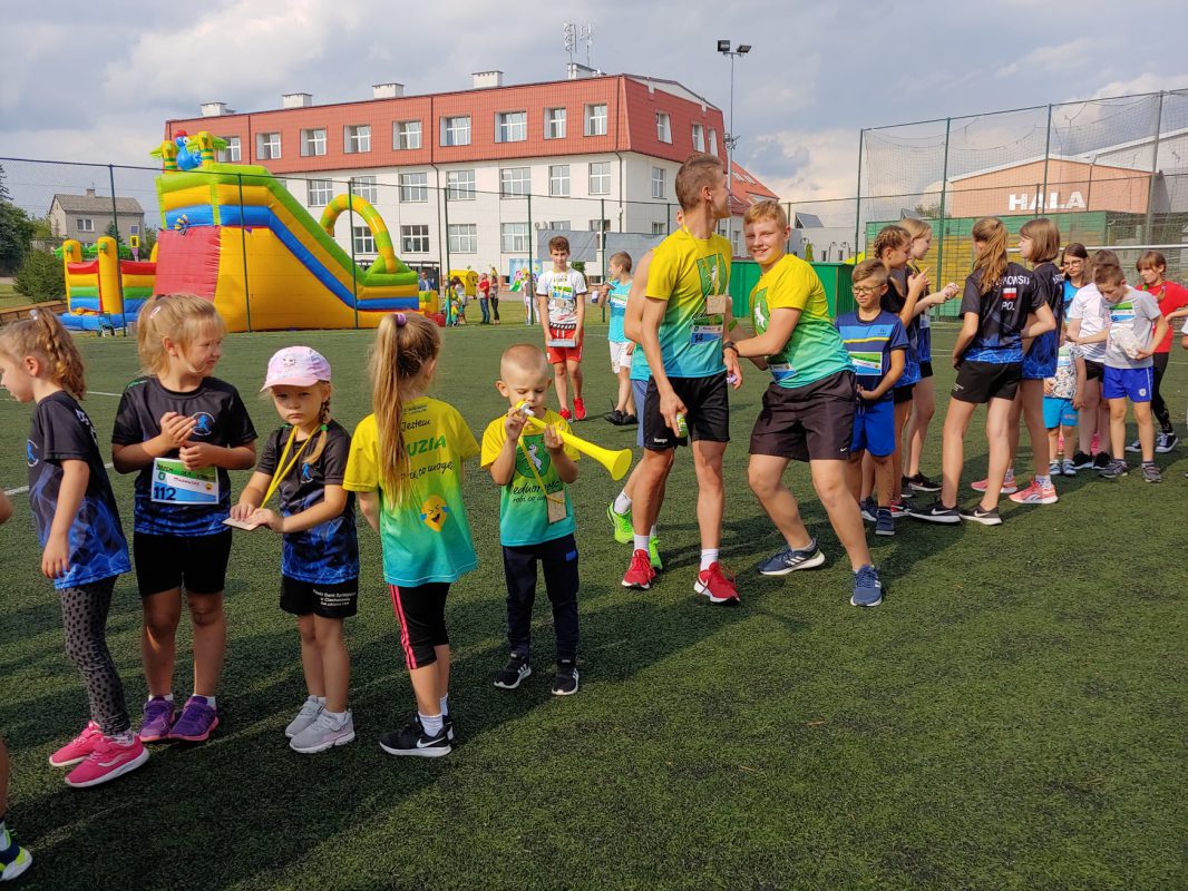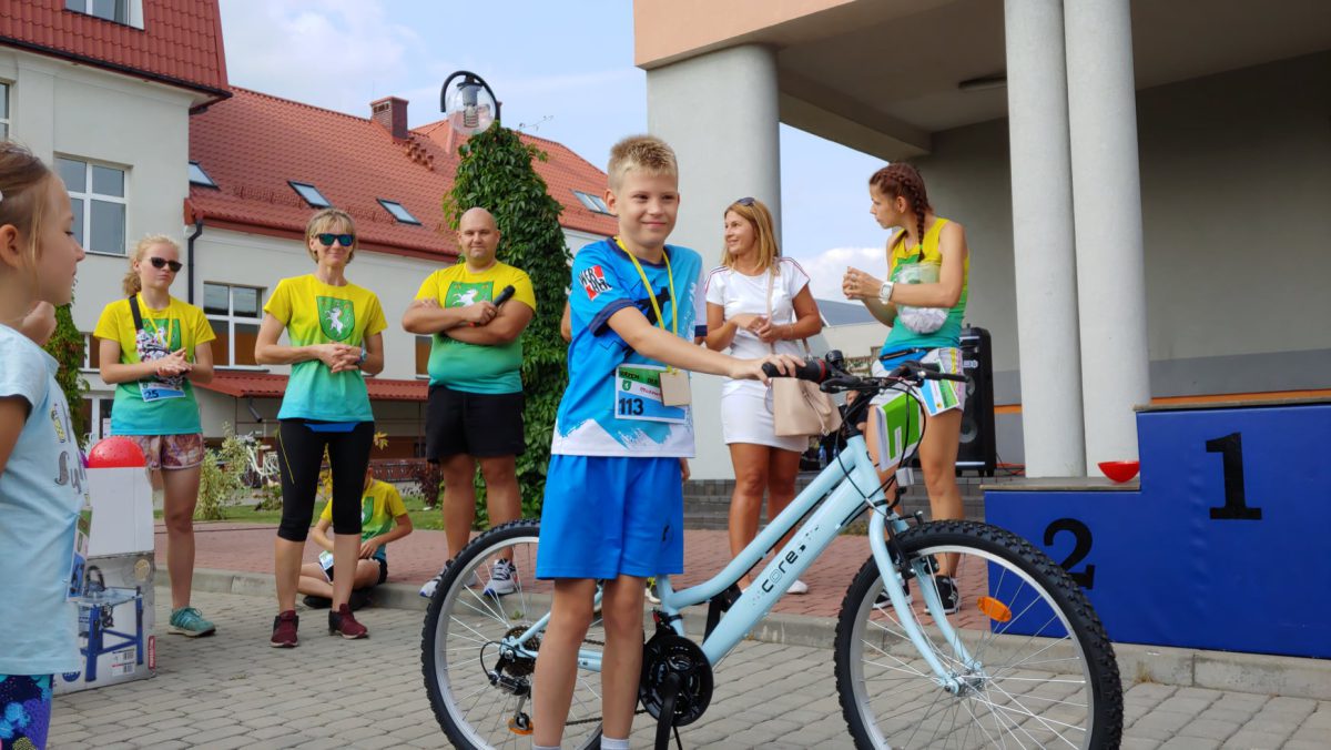 Już przed godziną 13 zaczęliśmy zapisy, bo dzieciaki nie mogły się doczekać. Natalia, Magda i Damian robili co mogli, by w biurze zawodów było szybko i sprawnie. W rozdawaniu pakietów pomagała im Kinga, Amelia i Karolina. No musicie przyznać, że idzie nam to coraz sprawniej! Praktyka czyni mistrza! A właśnie, tym razem rozgrzewkę poprowadziła Joanna Borczak w towarzystwie córki Oli i Magdy, która nigdy nie prowadziła żadnej rozgrzewki, a jak było widać jest do tego stworzona! Po rozgrzewce rozpoczęły się starty dzieci. Po biegu odbyły się konkurencje sportowe, którymi dowodzili Marcin i Robert. „Skoki w workach” oraz „rzuty do celu” zgromadziły niesamowitą liczbę chętnych. Najzręczniejsi zostali nagrodzeni, a wszyscy, którzy wzięli udział otrzymali słodkie drobiazgi. Po wysiłku wszyscy uczestnicy realizowali kupony na darmową watę i popcorn, które otrzymali w pakietach startowych. Tym razem pod namiotem stowarzyszenia rządzili nasi panowie: Michał, Waldek i Sylwek. Dziewczyny robiły co mogły, ale to panów kolejka błyskawicznie znikała. Brawo! Na zakończenie nasi wspaniale uzupełniający się spikerzy Darek i Marcin rozpoczęli losowanie nagród głównych: 2 rowerów, które w imieniu Wójta wręczyła Pani Liliana Zabielska – Sekretarz Urzędu Gminy Jednorożec. Jeden z rowerów pojechał do chłopca z Ciechanowa, a drugi do dziewczynki z Zambrowa,która stwierdziła :”Od dziś będę biegać!” I o to biega! Gratulacje! Rozlosowano jeszcze kilkanaście dość ciekawych nagród, zaś potem każdy otrzymał nagrodę pocieszenia, nie mogło przecież być smutnych minek na naszym biegu!