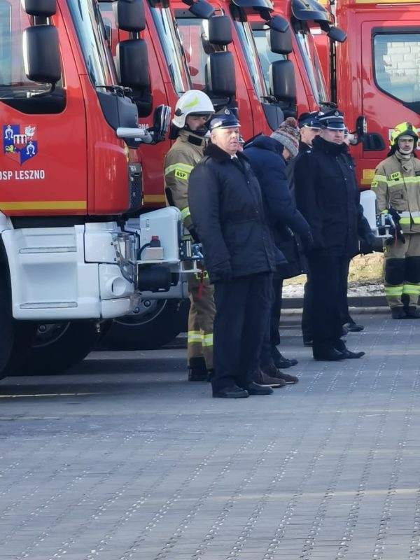 komendant wojewódzki generał Jarosław Nowosielski, senator Marek Martynowski, prezes WFOŚi GW Marek Ryszka, beneficjenci, komendanci powiatowi PSP oraz druhowie strażacy. W uroczystościach wzięli udział także przedstawiciele jednostki OSP Leszno i Grażyna Wróblewska, Wójt Gminy Przasnysz.
