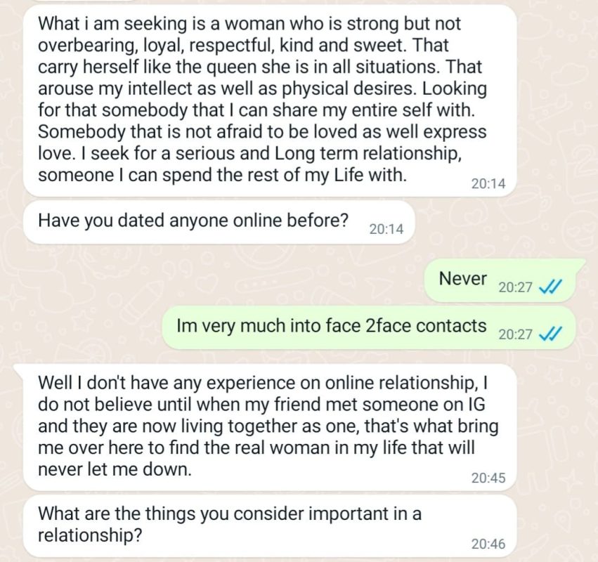 W ostatnich dniach jedna z mieszkanek podradomskiej miejscowości dostała zaproszenie do zawarcia znajomości z „żołnierzem”. Kobieta nie dała się oszukać, ponieważ znalazła w sieci komunikaty policyjne przestrzegające przed taki oszustami. Dzięki jej zgodzie możemy opublikować zrzuty ekranu w popularnego komunikatora (korespondencja prowadzona była w języku angielskim) i rozszyfrować metodę działania oszustów, a tym samym przestrzec potencjalne ofiary wielkiej miłości amerykańskich „żołnierzy”.