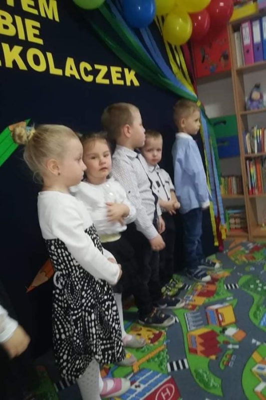 Uroczystość rozpoczęła się od krótkiej części artystycznej, w której maluszki zaprezentowały swoje umiejętności – dając tym samym dowód, jak dużo już potrafią. Po części artystycznej, dzieci obiecały: zgodnie bawić się w przedszkolu, przychodzić każdego dnia z uśmiechem, słuchać pani i pomagać kolegom, być dzielnym przedszkolakiem. Następnie Pani Dyrektor dokonała uroczystego pasowania każdego dziecka na przedszkolaka.