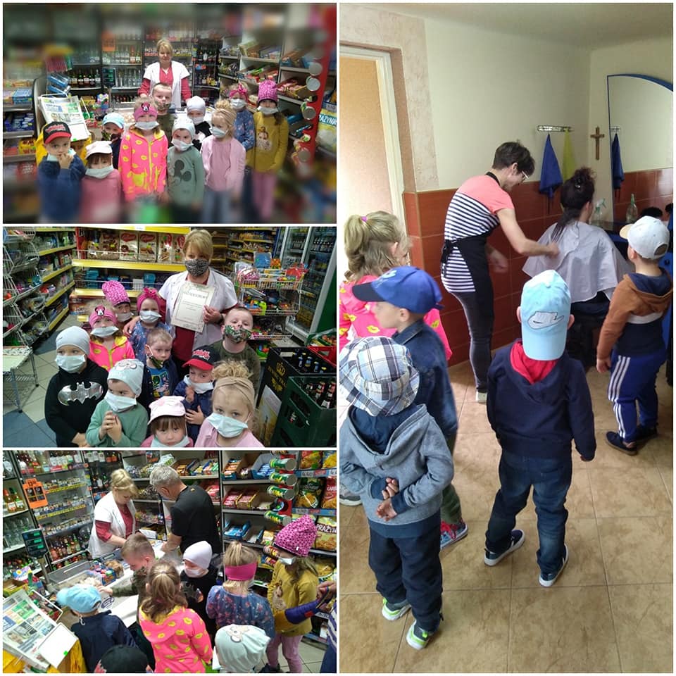Dzieci również wybrały się w odwiedziny do sąsiadujących sklepów, żeby zapoznać się z zawodem sprzedawcy. Były również w zakładzie fryzjerskim i oczywiście u strażaków w OSP w Starej Krępie.