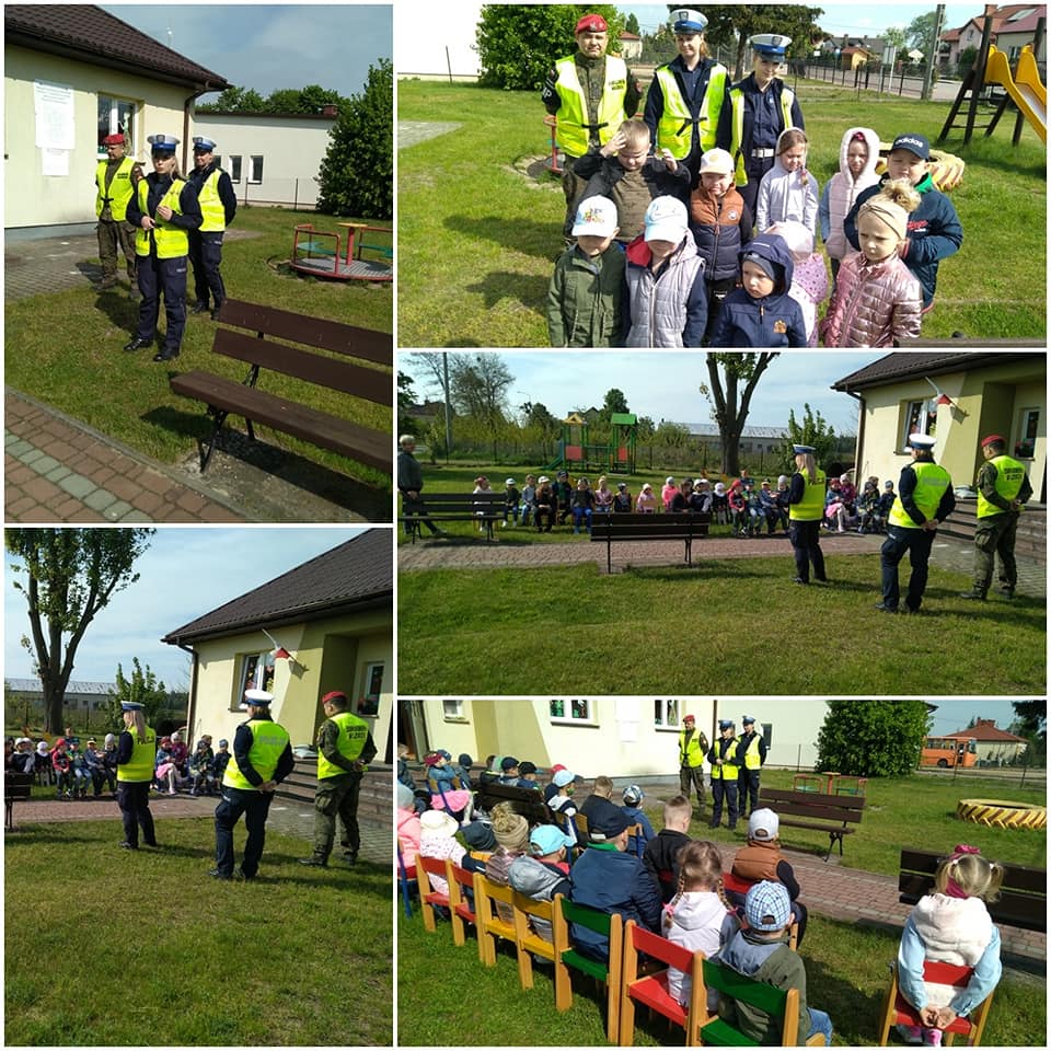 W piątek, 21 maja w przedszkolu w Starej Krępie zjawili się policjanci, a raczej policjantki w niezwykłym towarzystwie żandarma wojskowego. Opowiadały one o bezpieczeństwie na drodze, jak należy się zachowywać, podkreśliły jak ważne są odblaski i w jaki sposób przechodzić przez jezdnię. Dzieci w podziękowaniu podarowały gościom laurkę i zaśpiewały piosenkę.