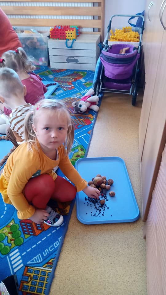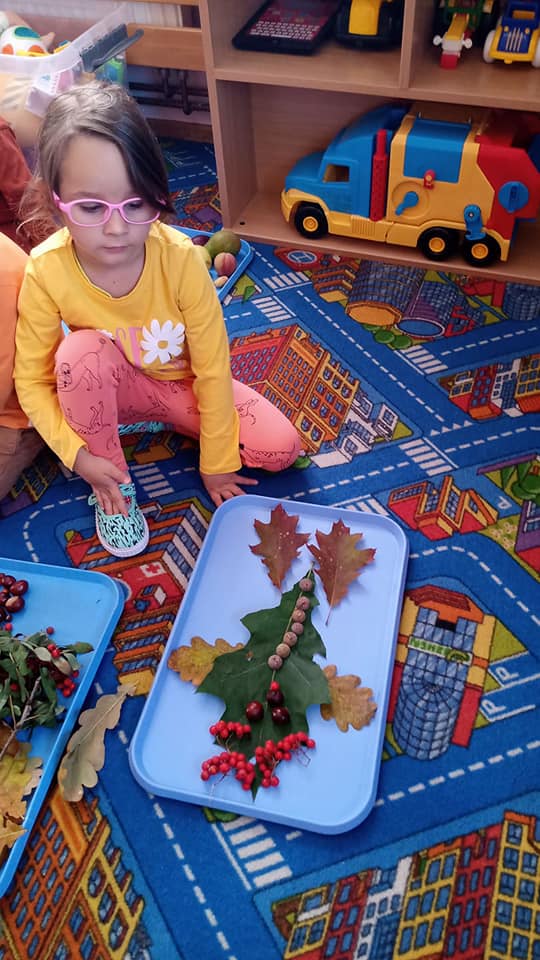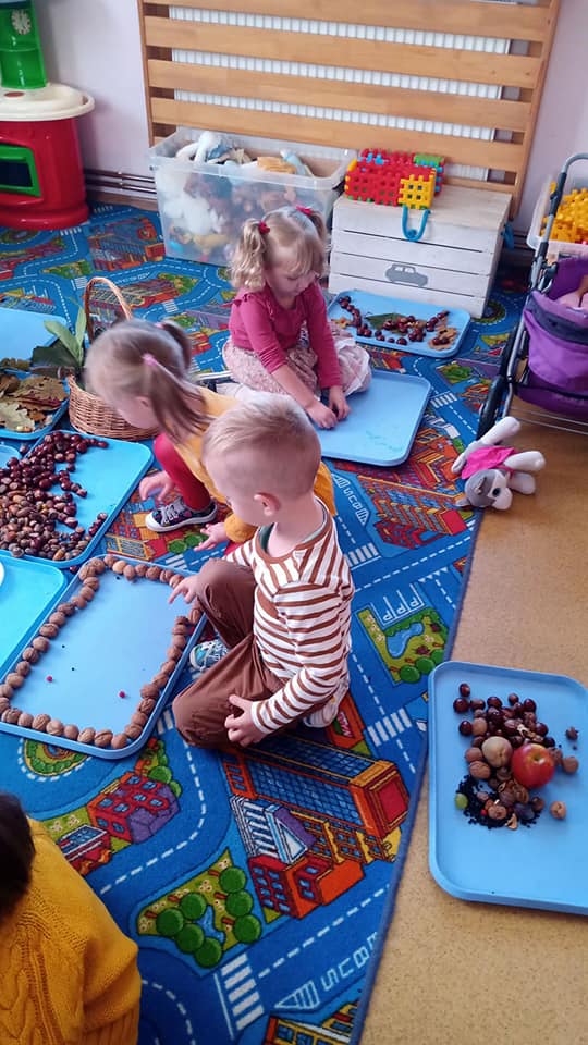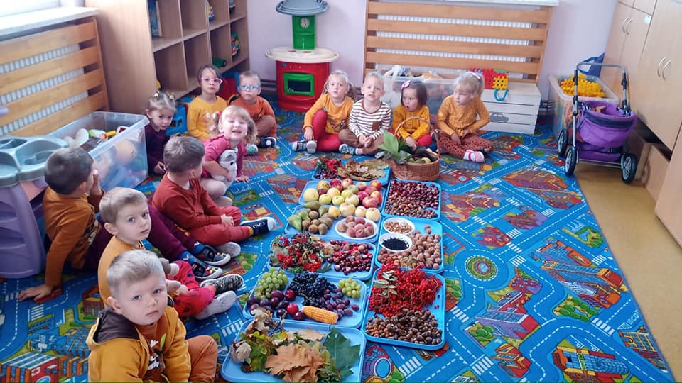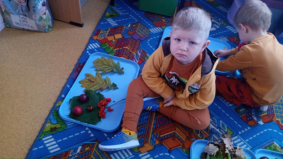 Wśród dzieci i rekwizytów dominowały kolory tej pory roku: brązowy, pomarańczowy, żółty i czerwony, a zajęcia i zabawy były poświęcone tematyce jesiennej.