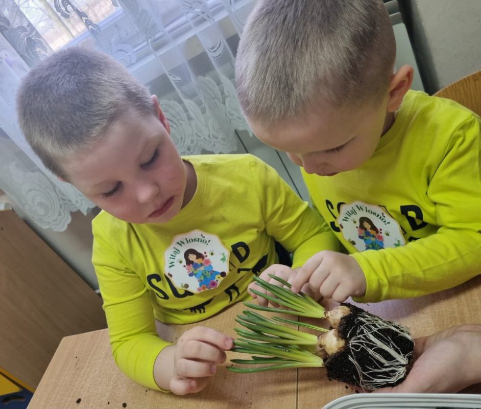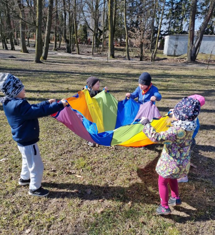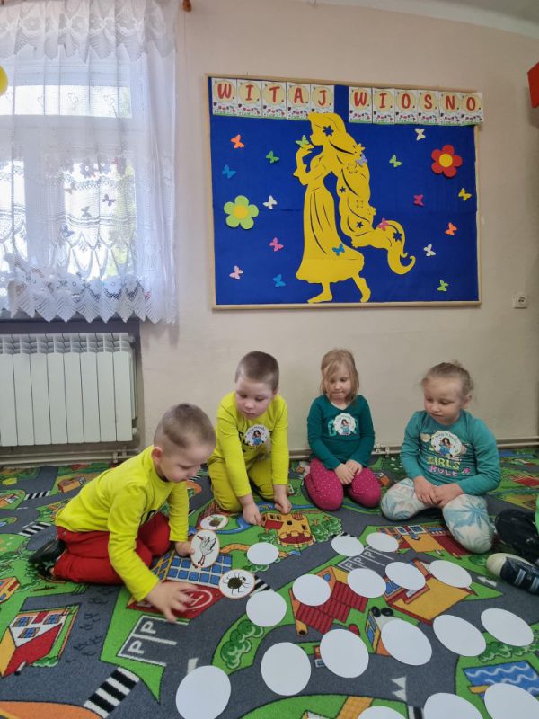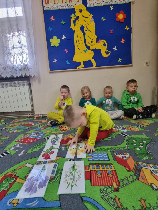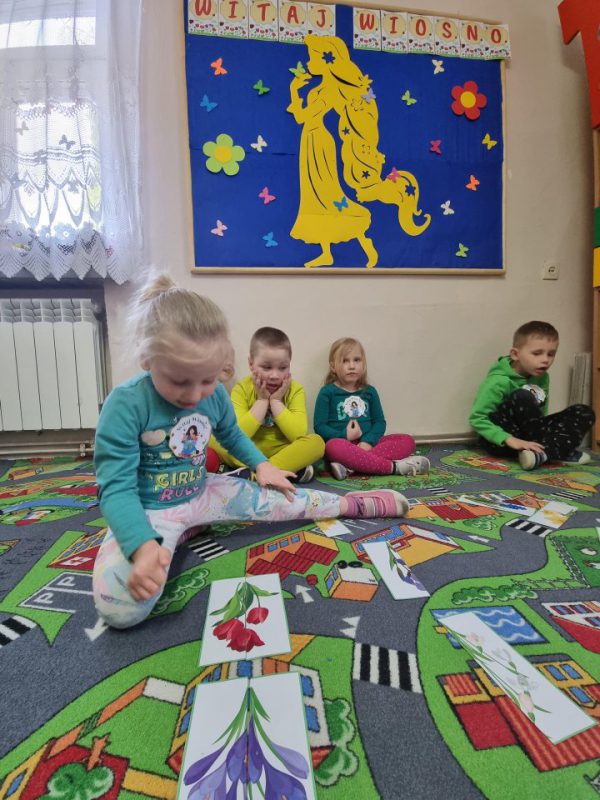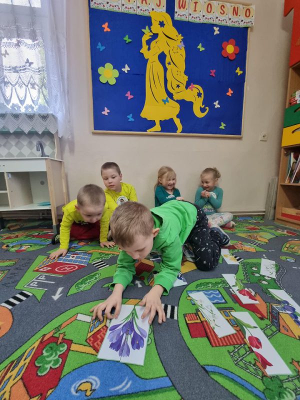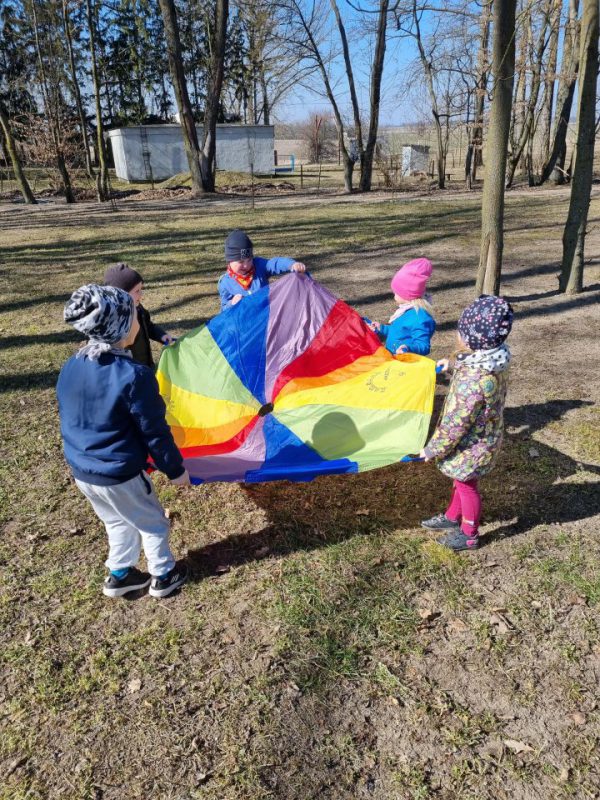 Jednak najwięcej radości sprawiło im poszukiwanie wiosny w plenerze. Już chwilę po wyjściu z przedszkola udało im się odnaleźć jej pierwsze zwiastuny. Pierwszy Dzień Wiosny był bardzo słonecznym dniem, więc korzystając z okazji dzieci z dużą radością uczestniczyły w zabawach na świeżym powietrzu.