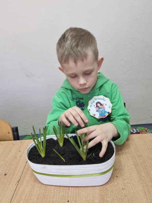 W czwartek 21 marca Dzieci z naszego przedszkola świętowały Pierwszy Dzień Wiosny. Uroczystości powitania Wiosny rozpoczęły się od konkursów, gier i zabaw związanych z tematyką pór roku. Dzieci m.in. rozwiązywały wiosenne zagadki, odgadywały nazwy wiosennych kwiatów, sadziły nowalijki.