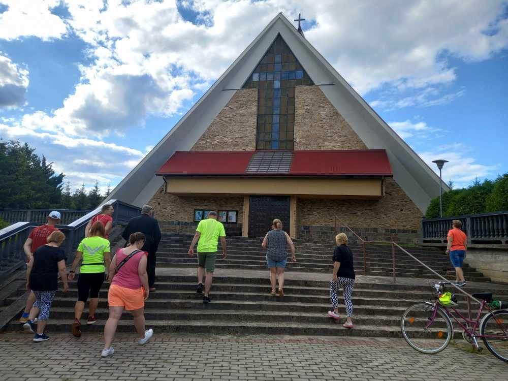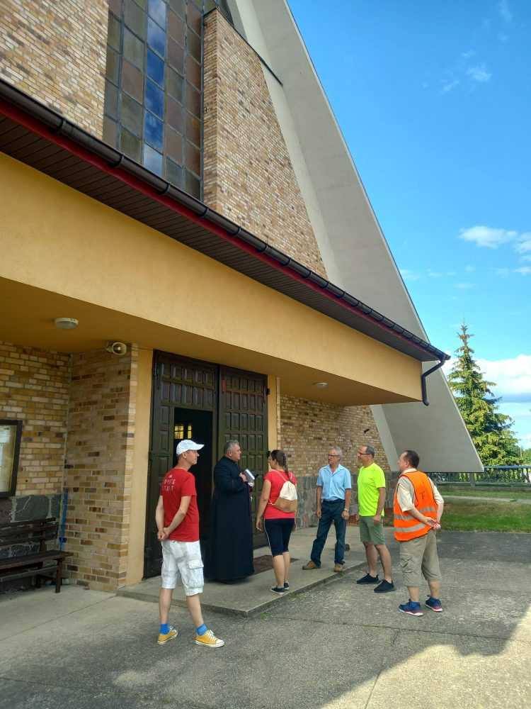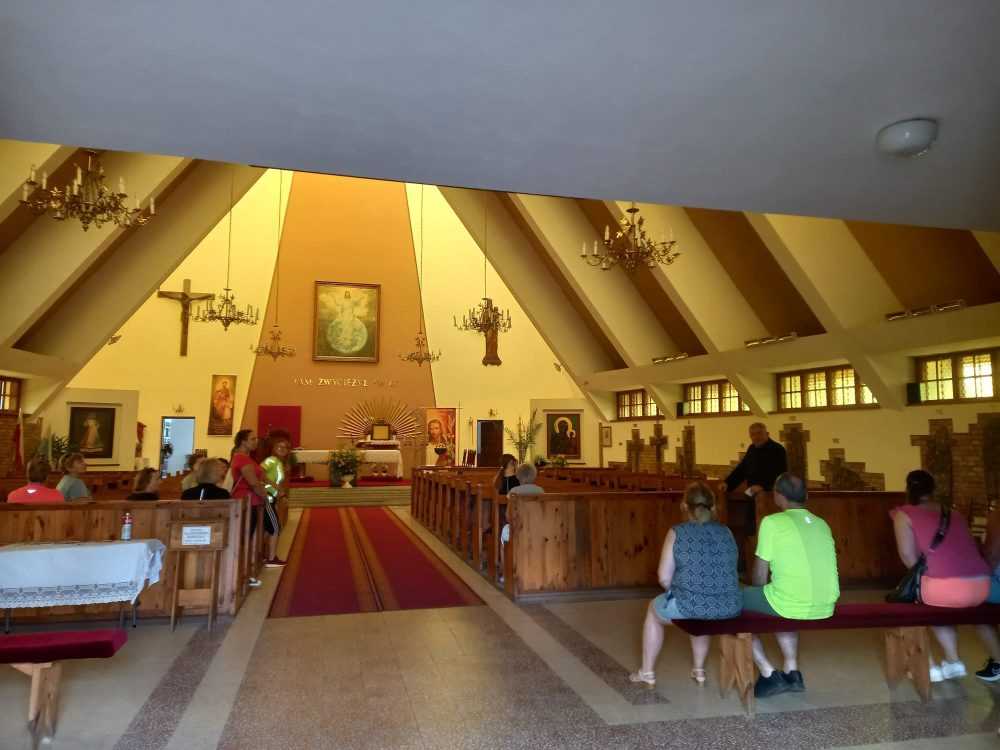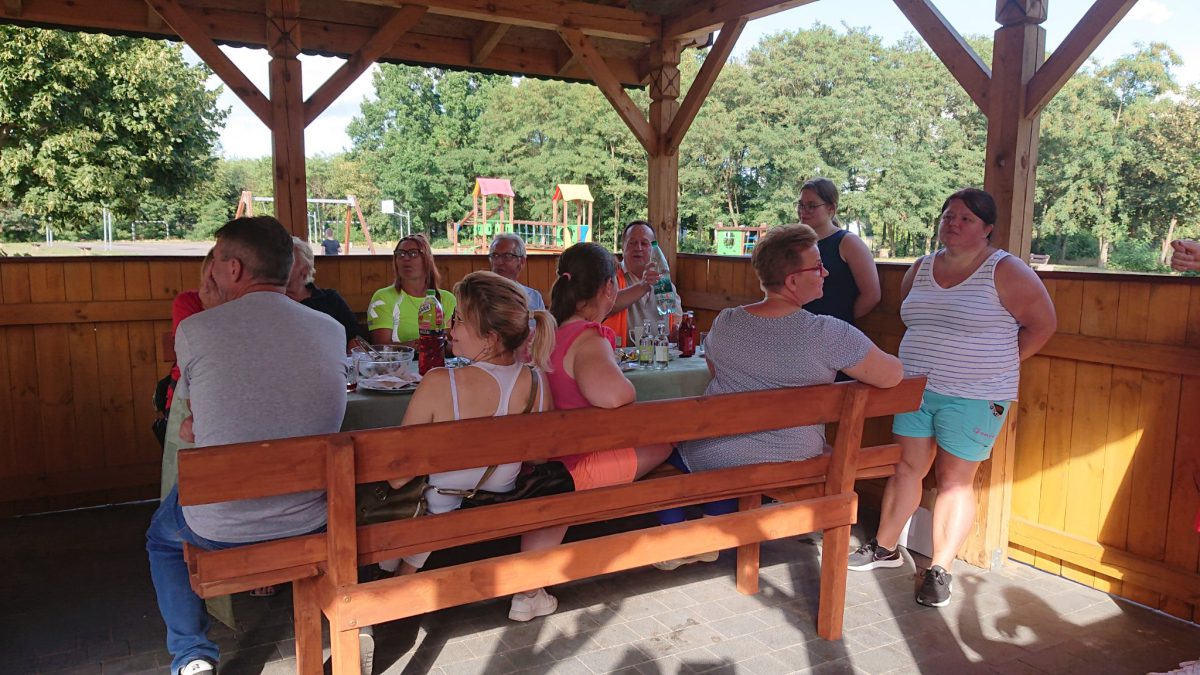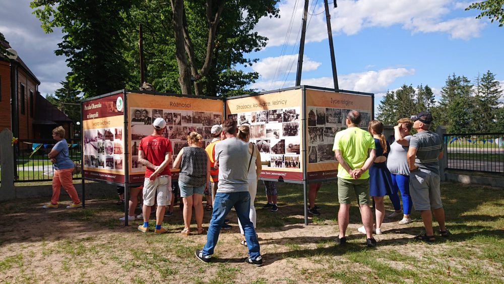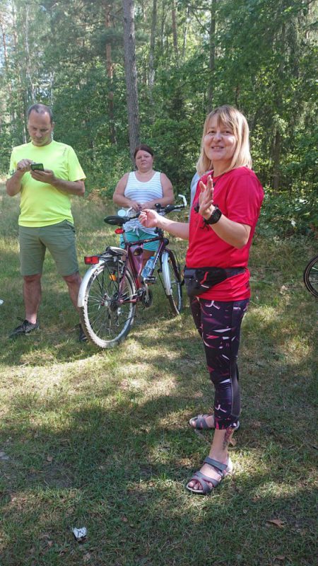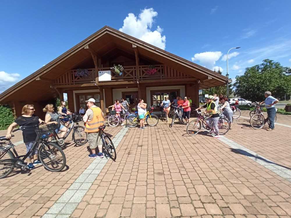 Było o regulacji Orzyca i do dziś widocznych pozostałościach tego procesu. Było o pochodzeniu nazw miejscowości i o przyrodniczych skarbach naszych nadorzyckich lasów. Nie zabrakło wspomnienia o rozwoju sieci parafialnej w dolinie Orzyca, stąd wizyta w kościele w Połoni. Była duma z niedawno otwartej wystawy plenerowej w Olszewce, którą odwiedziliśmy. Było głosowanie, którą drogą jechać – dzięki temu, mimo początkowych obaw o stan dróg po ostatnich deszczach, jechaliśmy pierwotnie zaplanowaną trasą. Była nieco bardziej wymagająca i dłuższa niż zwyczajowe nasze wyprawy, ale dla zaprawionych w rowerowych wojażach to nie problem! Okazało się, że dla tych, co byli z nami po raz pierwszy, też nie było problemu! Wreszcie było o nazwach miejscowych i przezwiskach na mieszkańców poszczególnych wsi. A to dlatego, że na finał pikniku przywitało nas Koło Gospodyń Wiejskich „Jasie” z Małowidza. Ja się nie spodziewałam, że tak nas ugoszczą! Potwierdzili znany już nam schemat – robisz coś z KGW, przygotuj się, że będzie na wypasie!