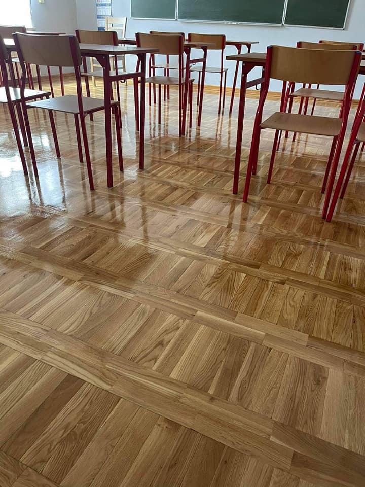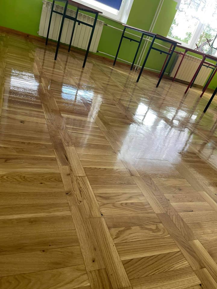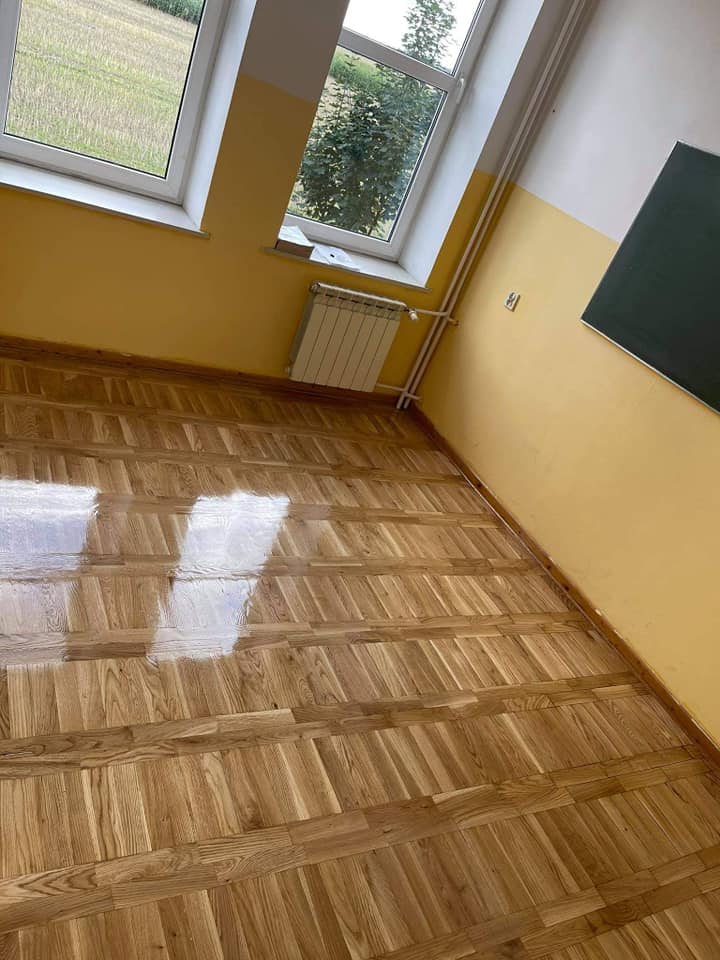 Prace remontowe w Szkole Podstawowej im. Św. Stanisława Kostki w Lesznie dobiegły końca. Wykonane zostało cyklinowanie i lakierowanie ok. 220 m2 drewnianych podłóg w klasopracowniach. Koszt naprawy podłóg wyniósł 13 937 zł.