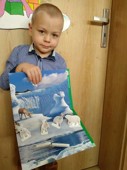 Dzieci w ramach innowacji pedagogicznej „Podróże małe i duże – przedszkolaki poznają świat” odwiedziły Biegun Północny i Południowy. Przedszkolaki z Czernic Borowych dowiedziały się jakie zwierzęta tam żyją.