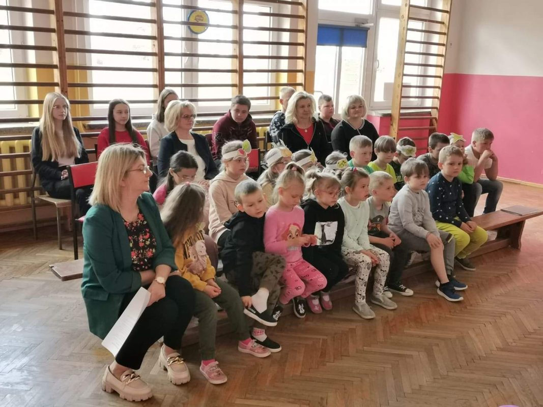 Podczas spotkania uczniowie zaprezentowali również swoje umiejętności recytatorskie i aktorskie. Przygotowali krótką prezentację wiersza Jana Brzechwy „Na straganie”. Pani Magda, zastępując nieobecną uczennicę, kreowała rolę marchewki.