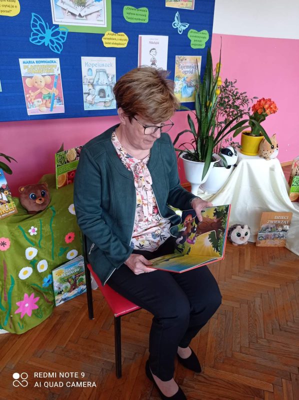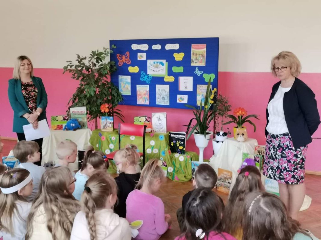 Pani Dyrektor, Grażyna Tymińska, w serdecznych słowach podziękowała Pani Magdalenie Szladze za szerzenie i promowanie czytania, które zawarła w bardzo udanej innowacji. Panią Magdę wspierały koleżanki, Pani Wiesława Waśniewska (opiekun stażu) i Pani Dorota Grabowska.
