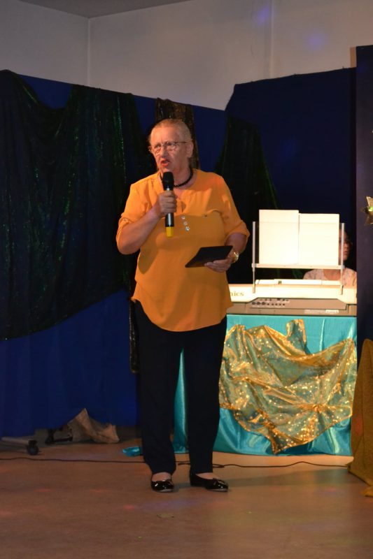Po powitaniu gości przedstawiono prezentację multimedialną podsumowującą działania w projekcie: spotkania autorskie, warsztaty plastyczne, warsztaty ilustratorskie, warsztaty wyrobu papieru czerpanego, warsztaty astronomiczne, konkurs fotograficzny „Moje spotkanie z książką”, spotkania „ Seniorzy – dzieciom”, interaktywno- multimedialne spotkania z literaturą dla dzieci i młodzieży, międzypokoleniowe warsztaty teatralne zakończone spektaklem oraz teatrzyk kamishibai – „Bajkowy świat”.