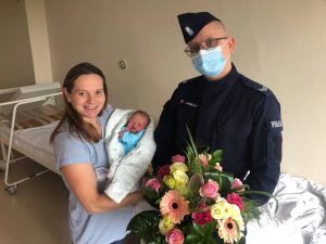 Do tego nietypowego zdarzenia doszło wczoraj wieczorem. Policjant z Kozienic – st. sierż. Ireneusz Iwańczyk z ogniwa patrolowo-interwencyjnego wykonywał obowiązki służbowe przed szpitalem w Kozienicach. W pewnym momencie usłyszał krzyk kobiety. Natychmiast wybiegł z radiowozu i podbiegł do auta stojącego na parkingu. Tam zauważył mężczyznę z kobietą, która krzyczała, że zaczyna rodzić. Funkcjonariusz założył rękawiczki i widząc wystającą główkę dziecka, odebrał poród. Gdy w pewnym momencie dziecko zaczęło się krztusić, przełożył je na dłoń i klepnął, wtedy chłopiec wydał głos. Policjant przekazał dziecko matce. Po chwili dalszej pomocy udzielili specjaliści ze szpitala w Kozienicach.