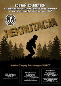 W 5 Mazowieckiej Brygadzie Obrony Terytorialnej zaczął działać nieetatowy Mobilny Zespół Rekrutacyjny. Zadaniem rekruterów z WOT jest wsparcie procesu naboru kandydatów do służby w najmłodszym rodzaju sił zbrojnych. „Headhunterzy” udzielą wszystkich informacji dotyczących służby oraz pomogą osobom zainteresowanym wypełnić wniosek o powołanie do terytorialnej służby wojskowej.