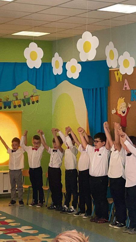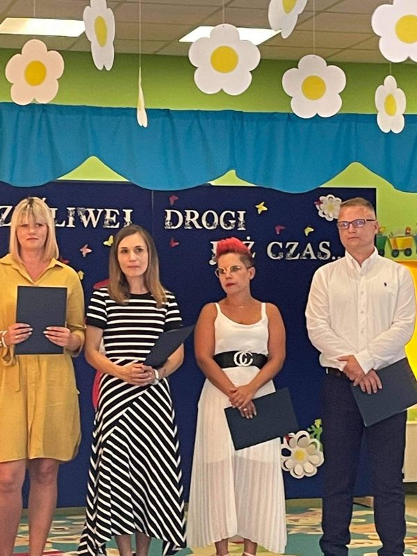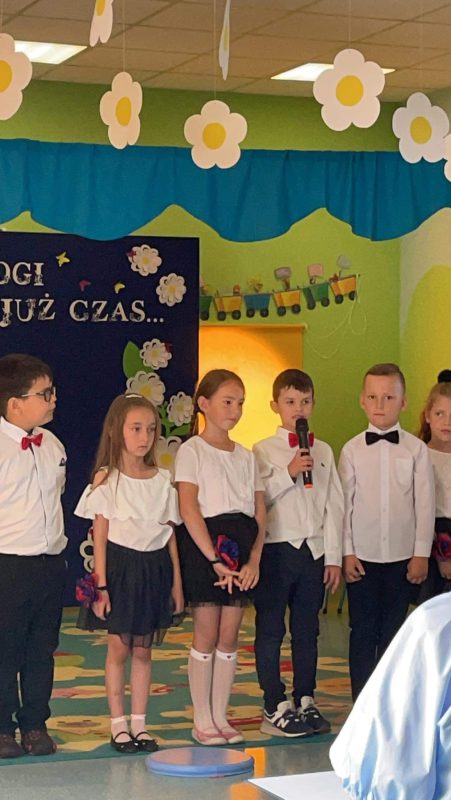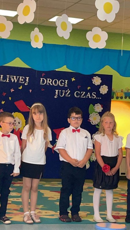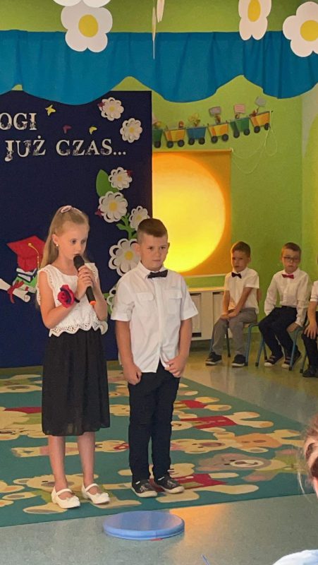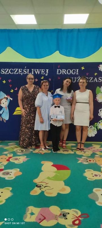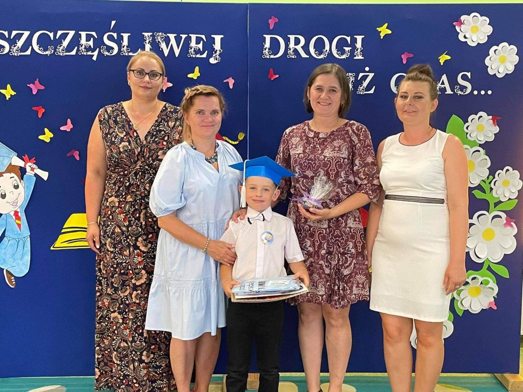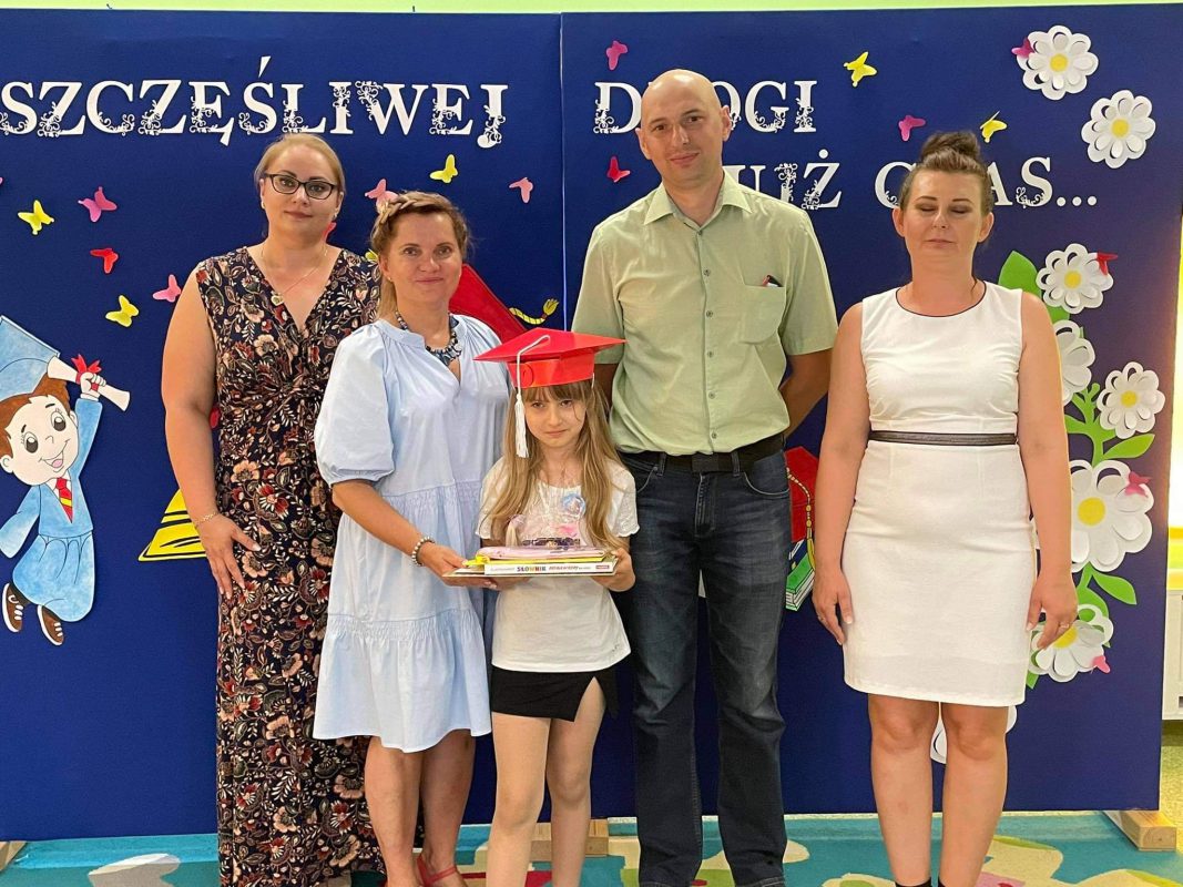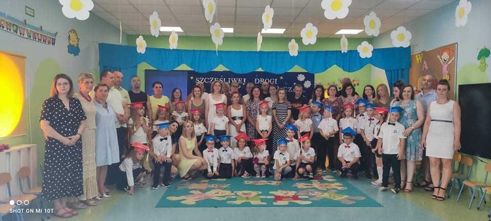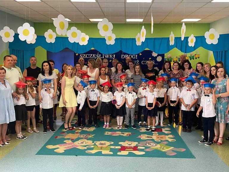 Następnie dzieci zaprezentowały krótką część artystyczną i w słowach wierszy i piosenek podziękowali wszystkim pracownikom przedszkola za trud włożony w ich rozwój oraz wychowanie. Po występie głos zabrała Dyrekcja przedszkola, która pogratulowała wszystkim starszakom udanego i pracowitego roku. Gorące podziękowania oraz dyplomy odebrali Rodzice, którzy w sposób szczególny angażowali się w pracę na rzecz naszego przedszkola. Także Rodzice w imieniu swoim i dzieci podziękowali pracownikom przedszkola za serce, trud i cierpliwość okazaną ich pociechom. Uroczystość zakończyła się rozdaniem dyplomów oraz upominków. Serdecznie gratulujemy przyszłym pierwszoklasistom. Życzymy im samych sukcesów w dalszej edukacji, wytrwałości w zdobywaniu kolejnych szkolnych szczytów i niegasnącej chęci zgłębiania wiedzy