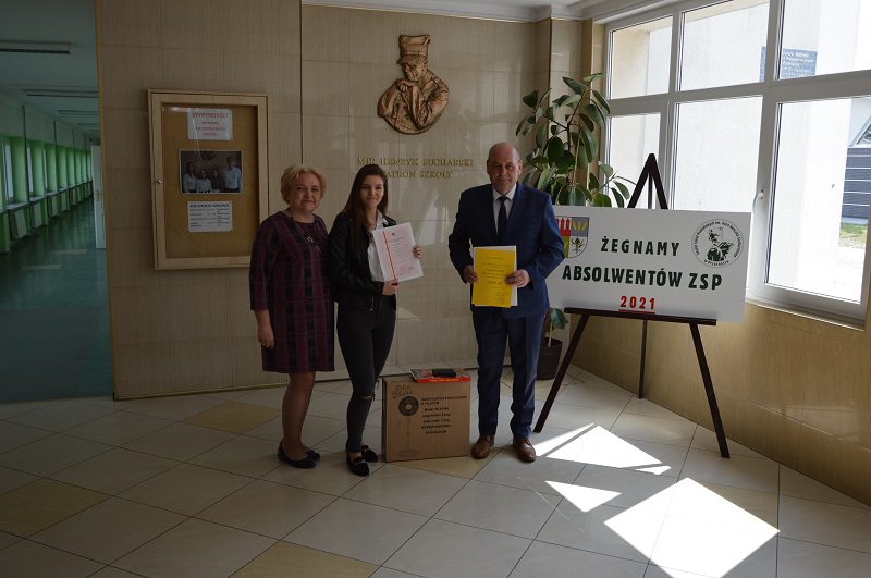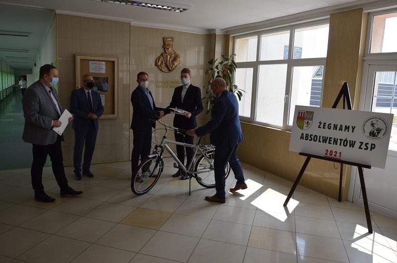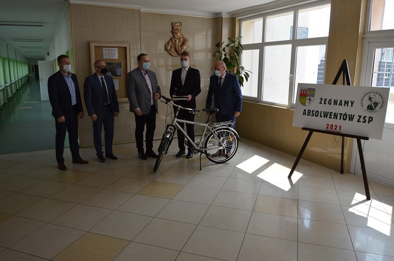 Mateusz Jurczak otrzymał gratulacje oraz pamiątkowe upominki od Krzysztofa Bieńkowskiego, Starosty Powiatu Przasnyskiego oraz Pana Andrzeja Brockiego, dyrektora ZSP w Przasnyszu. Specjalną nagrodę, w postaci roweru trekkingowego, ufundował przyjaciel naszej szkoły – Robert Olsztyn, współwłaściciel firmy IDEA ELECTRIC i MOTO IDEA BIKE.