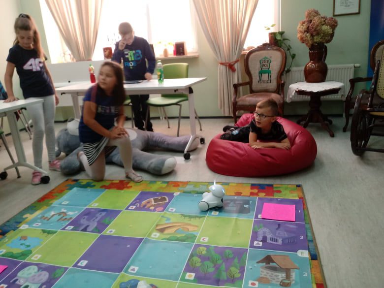 Na zajęciach wakacyjnych w Gminnej Bibliotece Publicznej w Krasnem dzieci poznały robota edukacyjnego Photon.