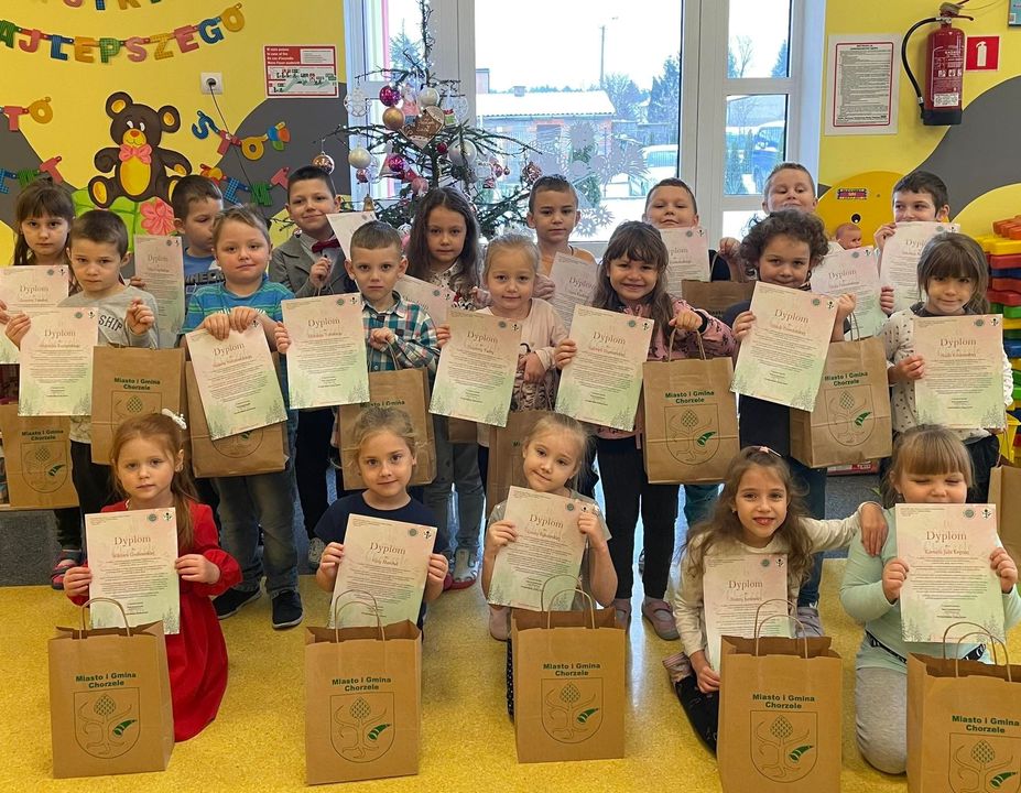 Grupa „Pszczółki” z Przedszkola Samorządowego w Chorzelach wraz z wychowawcą Agnieszką Grabowską: