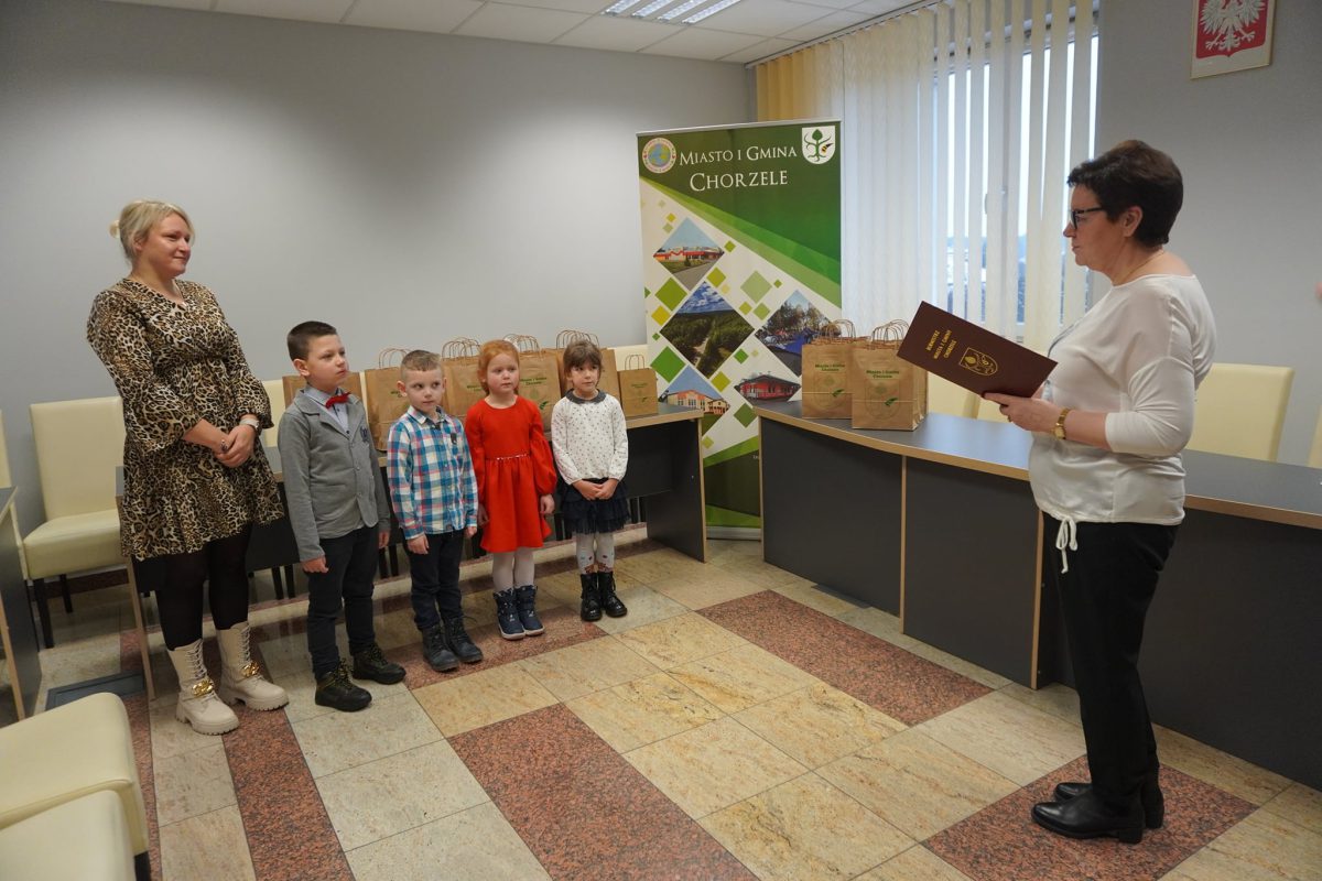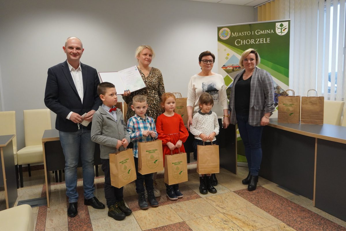 W czwartek, 8 grudnia, władze Gminy Chorzele podziękowały przedstawicielom uczestników akcji „Myślę, wiec nie śmiecę” w ramach realizowanego przez Urząd programu „W Gminie Chorzele sercom bliska ochrona środowiska – Jesteśmy Eko” i przekazały dyplomy, słodkie upominki oraz eko gadżety.