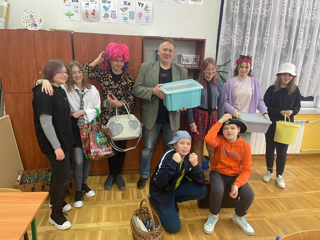 Prima Aprilis to dzień żartów i dowcipów, z tej okazji uczniowie i nauczyciele Szkoły Podstawowej w Lesznie przyszli do szkoły w nietypowych strojach a plecaki zastąpiły pudła, bańki, walizki…