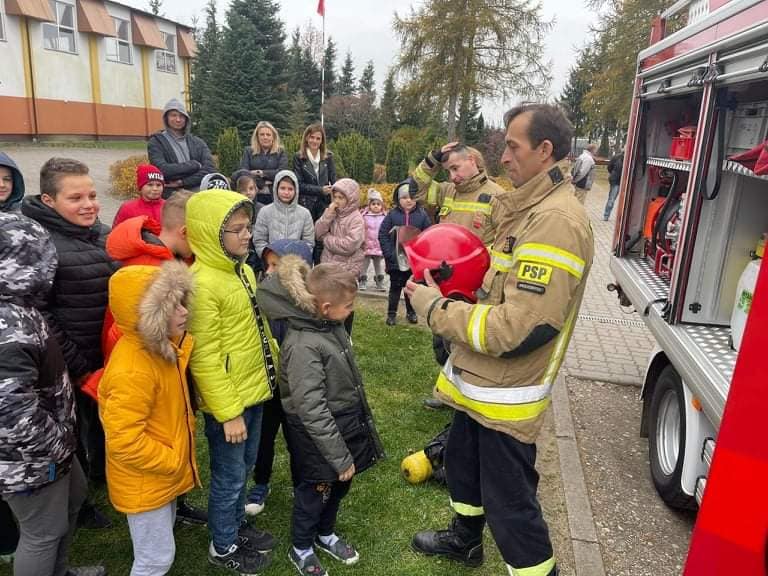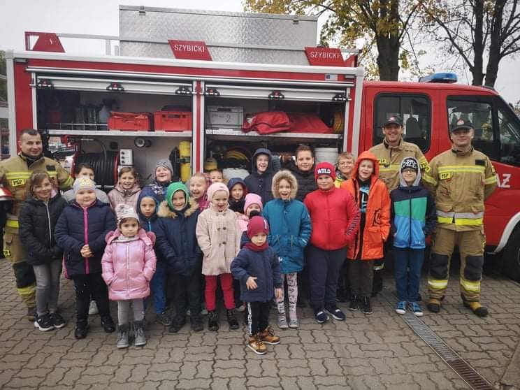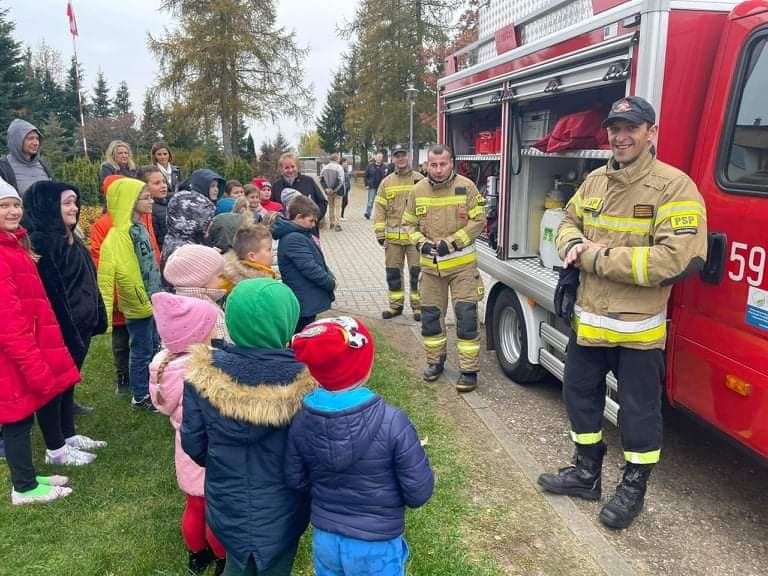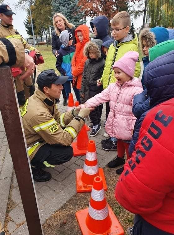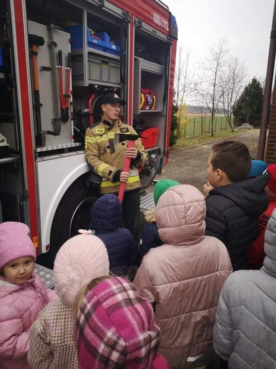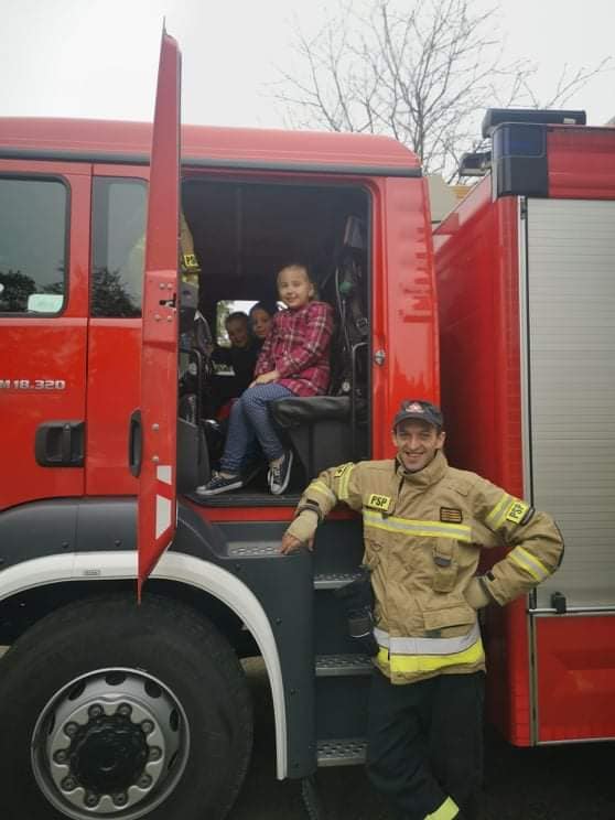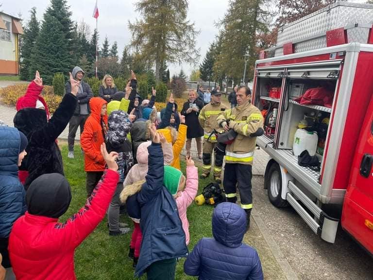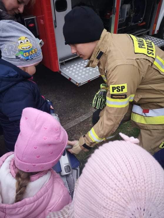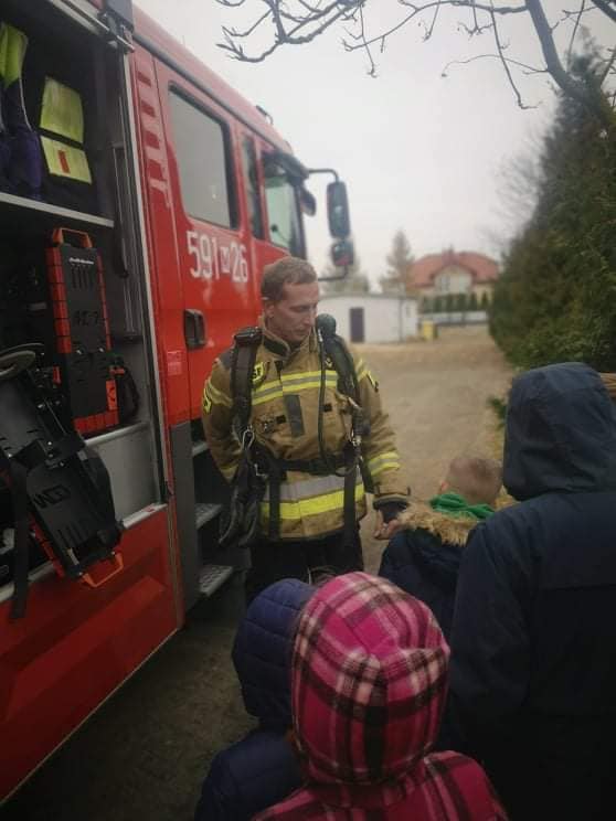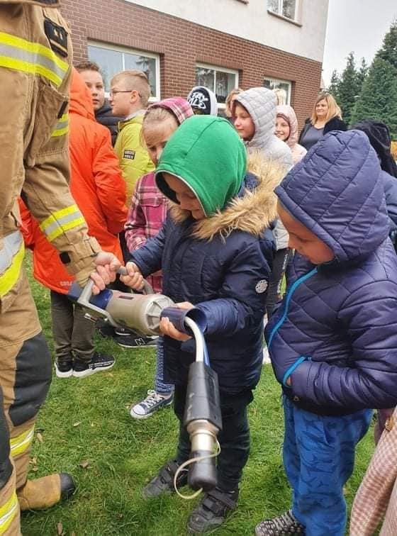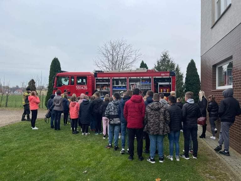 Po sprawnie przeprowadzonej ewakuacji uczniowie poznali wyposażenie wozów strażackich, sprzętu jakiego używają strażacy podczas akcji ratunkowych, ale również zdobyli cenną wiedzę na temat zasad bezpieczeństwa. Bardzo dziękujemy Państwowej Straży Pożarnej w Przasnyszu, to była bardzo ciekawa lekcja!