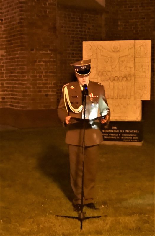 Zgromadzeni pod Krzyżem Katyńskim mieszkańcy oraz przybyli goście odśpiewali hymn państwowy, po czym wysłuchali krótkiej prelekcji Pana Bartosza Drejerskiego z Muzeum Historycznego w Przasnyszu na temat agresji radzieckiej na II Rzeczpospolitą. Następnie por. Arkadiusz Michalski odczytał Apel Pamięci, a kompania honorowa 2. Przasnyskiego Ośrodka Radioelektronicznego oddała salwę dla uczczenia bohaterów walk o niepodległość Ojczyzny. Uroczystość zakończyło złożenie zniczy przed Krzyżem Katyńskim przez mieszkańców oraz przybyłych gości.