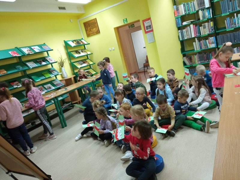 . Pierwszym celem naszej wycieczki była wizyta w Bibliotece Pedagogicznej w Przasnyszu. Biblioteka to magiczne miejsce, a spędzony w niej czas może być bardzo atrakcyjny. I o tym właśnie przekonały się nasze przedszkolaki. Podczas ciekawych warsztatów edukacyjnych dzieciaki przypomniały sobie i utrwaliły wiadomości na temat świąt narodowych oraz symboli naszej Ojczyzny. Wykonały też flagę, która w Dniu Flagi ozdobi okna ich domów.