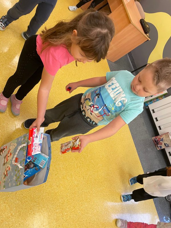 Przez dwa tygodnie mieliśmy możliwość przynoszenia słodyczy. W piątek 26 listopada zakończyła się akcja charytatywna „Paczka dla Dzieciaczka”. Dzieci z wszystkich grup przedszkolnych bardzo zaangażowały się w pomoc potrzebującym. Udało nam się zebrać dużo słodkości, za które dziękujemy. Słodycze zostały już odebrane przez Panią Paulinę Dębską.