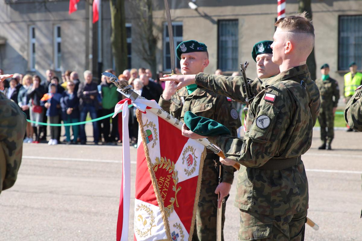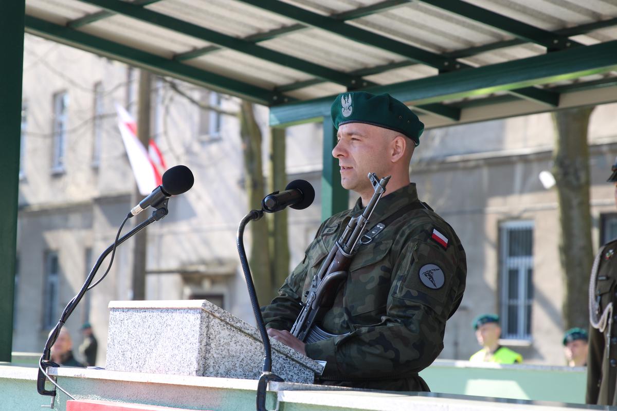 – Przysięga wojskowa jest aktem ślubowania wyrażającym cele i zadania postawione żołnierzom przez naród Polski. Jest także zobowiązaniem żołnierzy wobec naszego społeczeństwa. Mam ten zaszczyt, aby oficjalnie powitać Was w wojskowej rodzinie. Przeszliście podstawowy okres szkolenia, który zaznajomił Was z żołnierskim rzemiosłem. W mojej ocenie macie bardzo dobre predyspozycje aby stać się w niedalekiej przyszłości świetnymi żołnierzami. Nigdy nikomu nie obiecywałem, że służba wojskowa należy do łatwych, ale wiem jedno, jeśli wybierzecie tę drogę swojego rozwoju z pewnością dojdziecie do wniosku, że było warto, bo macie szansę robić w życiu to o czym inni tylko marzą…służyć wiernie Rzeczypospolitej Polskiej, bronić jej niepodległości i granic… Każdego dnia pamiętajcie o tej pasji, fascynacji i miłości do polskiego munduru, które sprawiły, że jesteście tu dziś z nami. To właśnie wasza pasja do wojska czeka, aż dogoni ją odwaga, dlatego nie wahaj się, bo jeśli czujesz, że to jest coś co powinieneś w życiu robić, to przestań marzyć i po prostu to zrób, wstąp w szeregi Wojska Polskiego i z dumą noś na ramieniu nasze narodowe barwy.