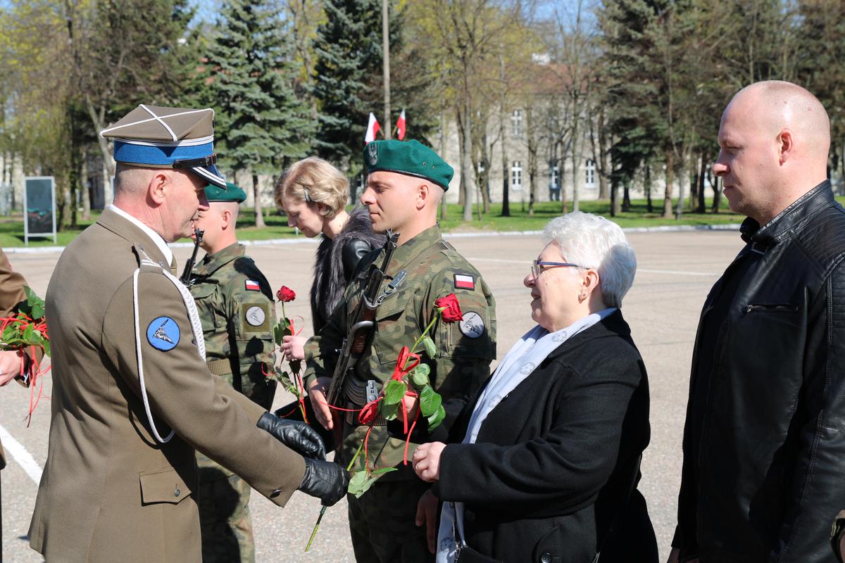 Szczególnie serdecznie dziękuję również rodzinom tych żołnierzy, za trud włożony w ich wychowanie, za codzienny wysiłek, jaki włożyliście we wpajanie im najważniejszych wartości, jakimi są: Bóg, Honor i Ojczyzna. To wzorce wyniesione z domu są dla nich teraz drogowskazem. To Wy rodzice i najbliżsi pokazaliście, że Rodzina jest najważniejsza i daliście pewność, że zawsze mogą na Was polegać. Dziękuję Wam za Wasze wsparcie i wyrzeczenia, dzięki którym otworzył się dla nich świat i dzięki czemu mogą się teraz realizować będąc częścią Sił Zbrojnych Rzeczypospolitej. Teraz natomiast wszystko zależy od nich samych, od ich determinacji i przekonania, że warto podjąć trud i nieugięcie stać na straży honoru Polski i Polaków