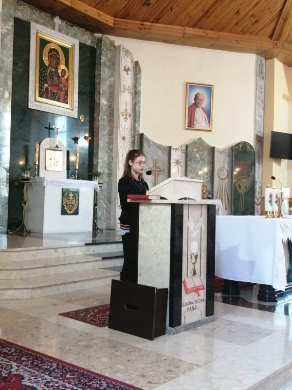 Uczniowie włączyli się w oprawę Liturgii poprzez piękny śpiew i czytanie Słowa Bożego. Rekolekcjonista przybliżył nam postać bł. Kard. St Wyszyńskiego. Natomiast po każdej Mszy Św. odbył się kiermasz z ozdobami wielkanocnymi wykonanymi przez uczniów i nauczycieli SP w Lesznie na rzecz rehabilitacji absolwenta Szkoły Podstawowej w Lesznie.