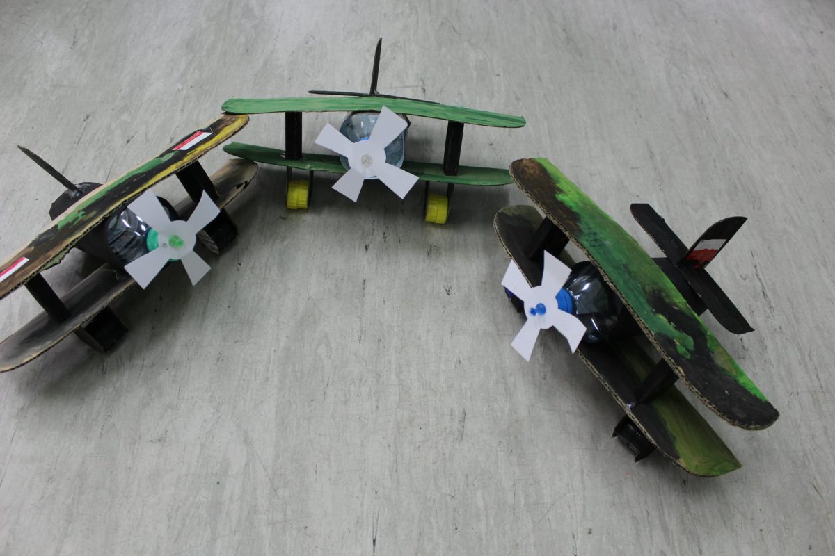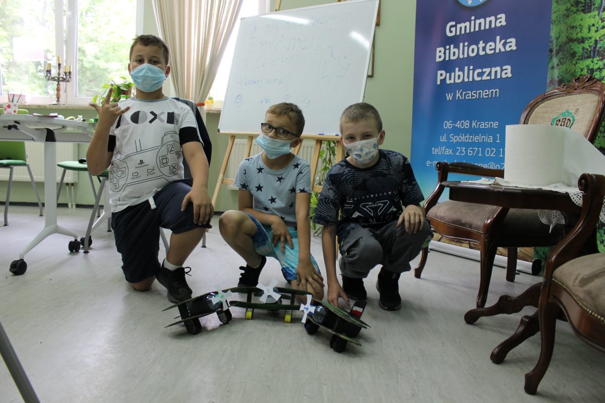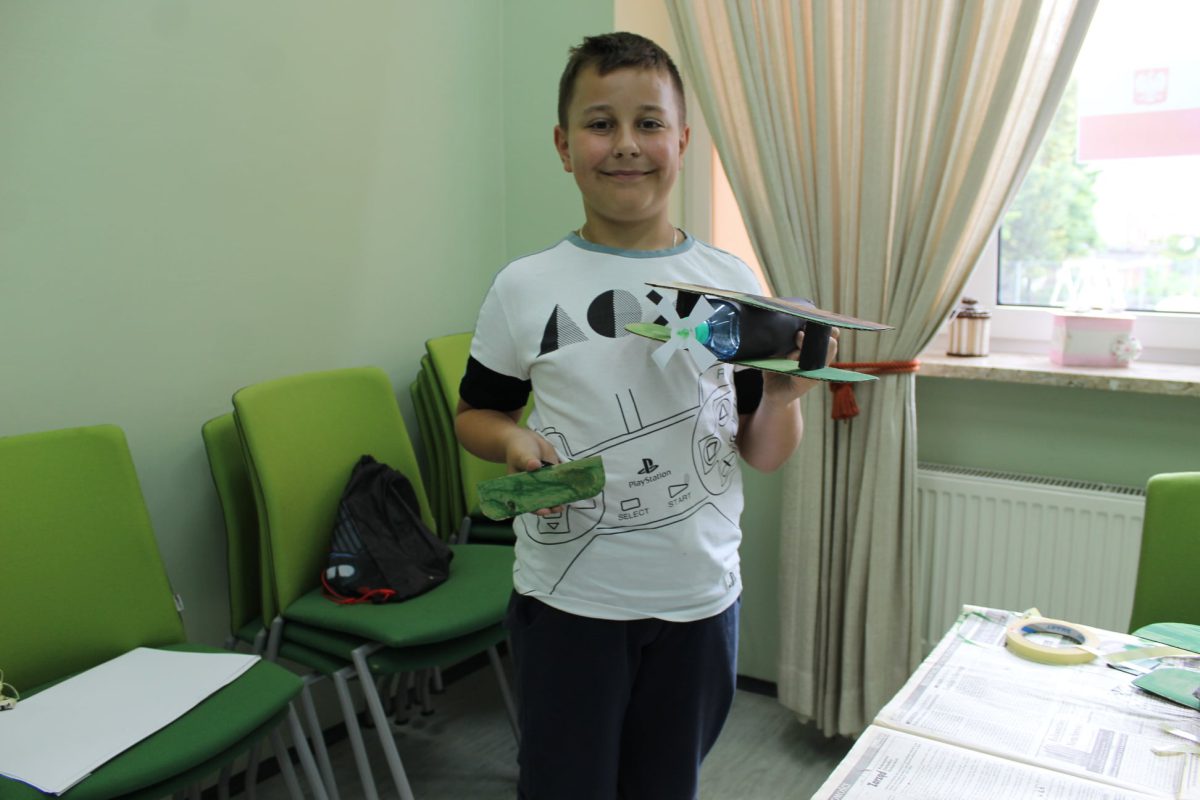 Męska część grupy zaprojektowała i wykonała natomiast model samolotu, również wykorzystując do tego celu materiały pochodzące z recyklingu.