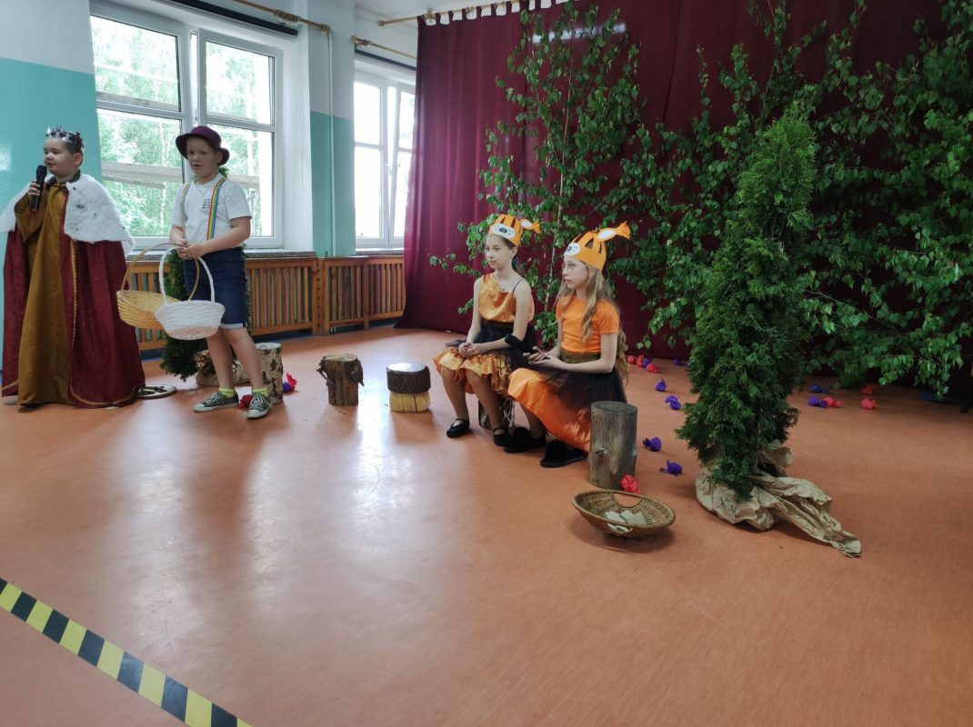 Uczniowie klasy 4 i 5 zaprezentowały spektakl pt. „Na jagody” opracowany na podstawie utworu Marii Konopnickiej.