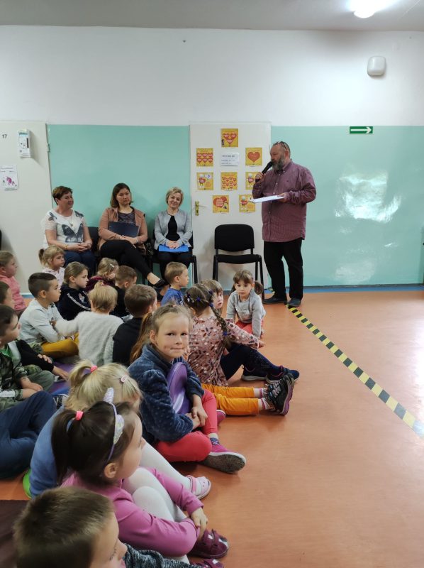 W Na początek wysłuchaliśmy wiersza w wykonaniu dyrektora szkoły , pana Piotra Sekuny o Stefku, „wielkim zuchu”, przechwalającym się przed innymi swoją odwagą.