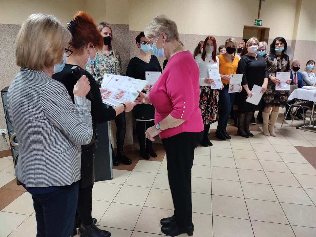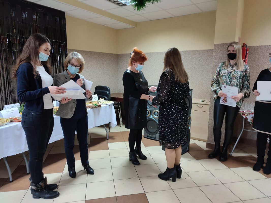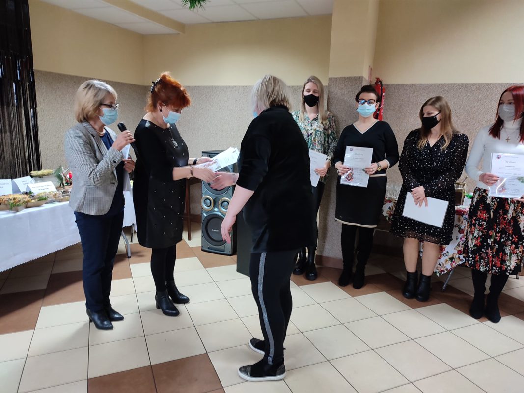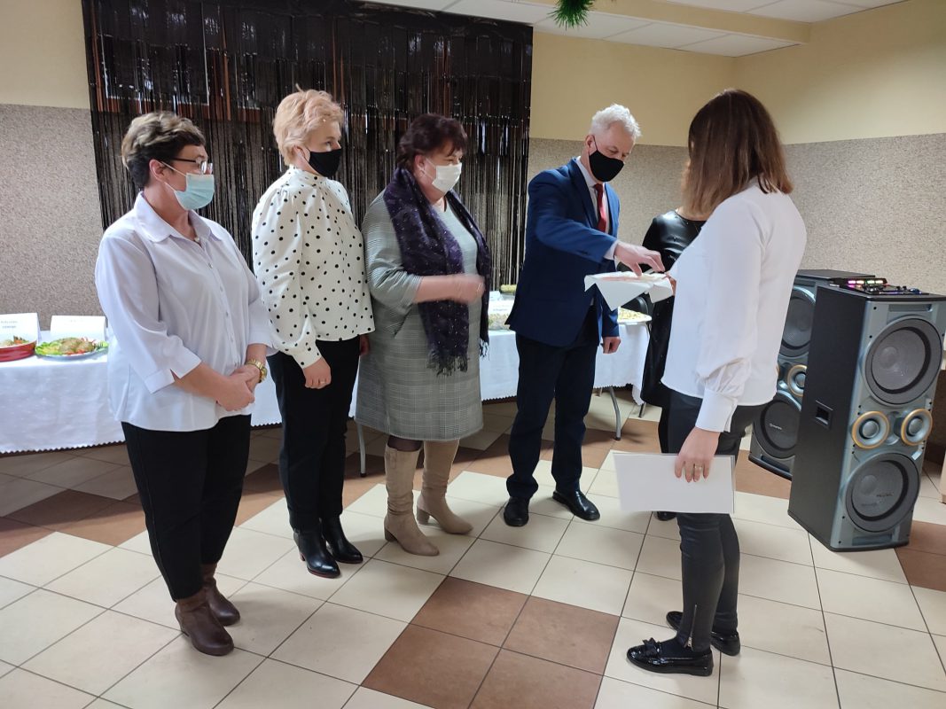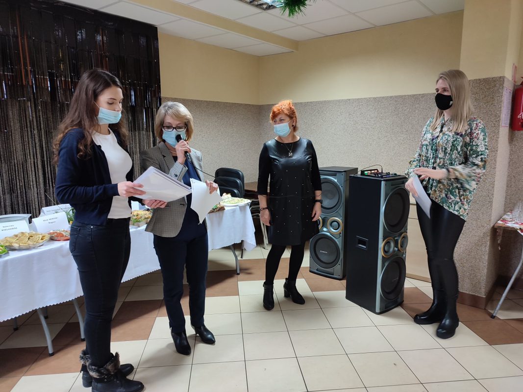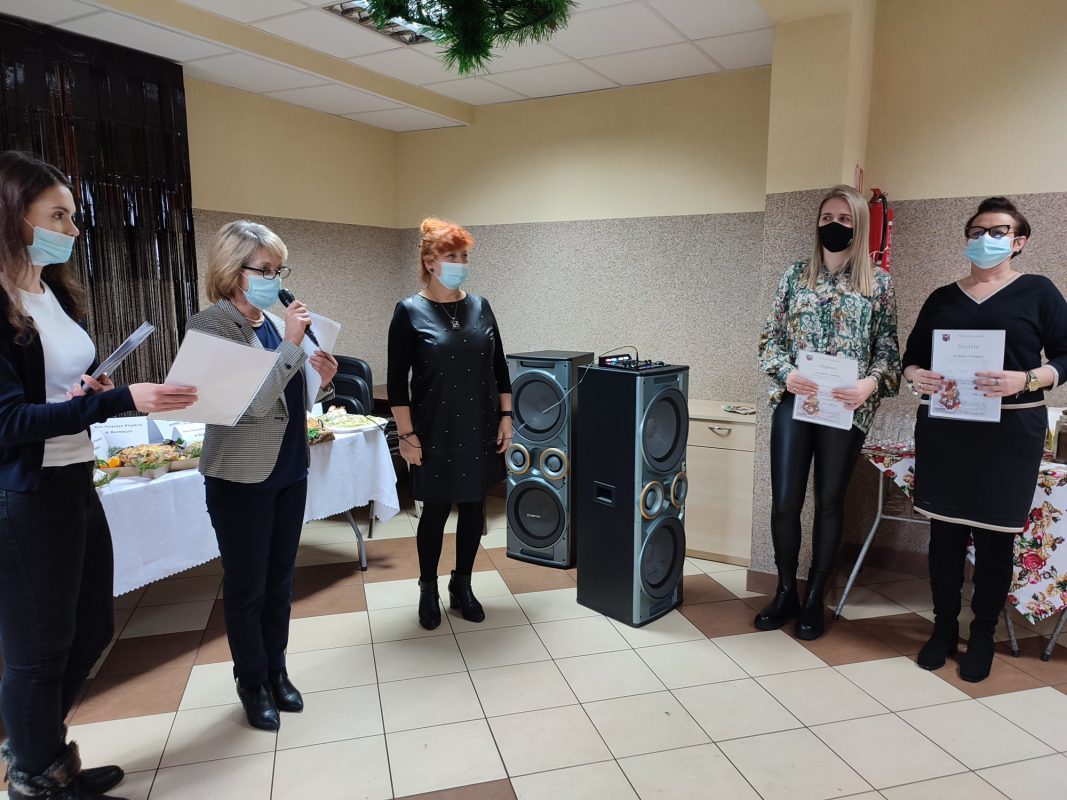 Po rozstrzygnięciu konkursu ogłoszono wyniki i wręczono nagrody w postaci bonów na zakupy. Nagrody trafiły do wszystkich uczestników zabawy. Po zakończeniu tej części spotkania, Grażyna Wróblewska, Wójt Gminy Przasnysz wraz z radnymi, Dariuszem Jankowskim, przewodniczącym Rady Gminy Przasnysz, Małgorzatą Grabowską, Renatą Wendą, przedstawicielkami powiatu przasnyskiego i Kołem Gospodyń Wiejskich z Gostkowa złożyli życzenia świąteczne dla uczestników konkursu oraz sołtysów obecnych na spotkaniu wigilijnym.
