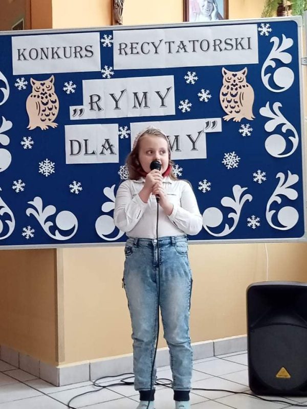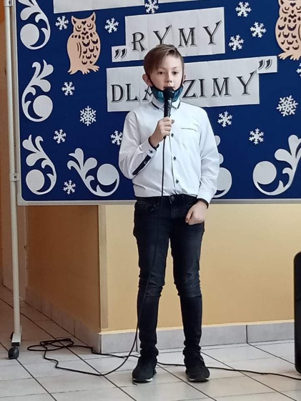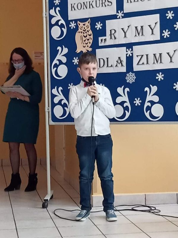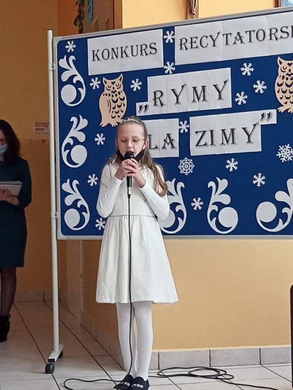 W piątek, 21 stycznia odbył się Konkurs Recytatorski – „Rymy dla zimy”. W Konkursie udział wzięli uczniowie klasy I, IIa, IIb i klasy III. Uczestnicy recytowali wiersze o tematyce zimowej. Były to utwory różnych autorów, m. in. Marii Konopnickiej, Władysława Bełzy, Czesława Janczarskiego, Ludwika Jerzego Kerna… Spośród 29! recytatorów wyłoniliśmy zwycięzców.