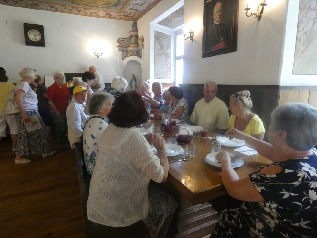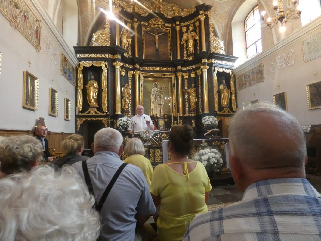 Następnie po zakończeniu Mszy Św. uczestnicy pielgrzymki udali się na wspólne rozważania stacji drogi krzyżowej po których wyruszyli w drogę do Bazyliki Nawiedzenia Najświętszej Maryi Panny w Stoczku. Po zapoznaniu się z historią klasztoru, która jest nierozłącznie związana z postacią Prymasa Tysiąclecia – Stefana Wyszyńskiego, który przez blisko rok więziony był za murami tutejszego klasztoru, pielgrzymi spożyli uroczysty obiad i udali się w dalszą drogę do Bazyliki Nawiedzenia Maryi Panny w Świętej Lipce – Sanktuarium cudów i pięknych organów. To właśnie tu Seniorzy mieli okazję podziwiać piękno ruchomych organów. Po zakończeniu koncertu pielgrzymi mieli czas wolny, który poświęcili na zwiedzanie okolicznych atrakcji, zakup pamiątek po czym udali się w drogę powrotną.