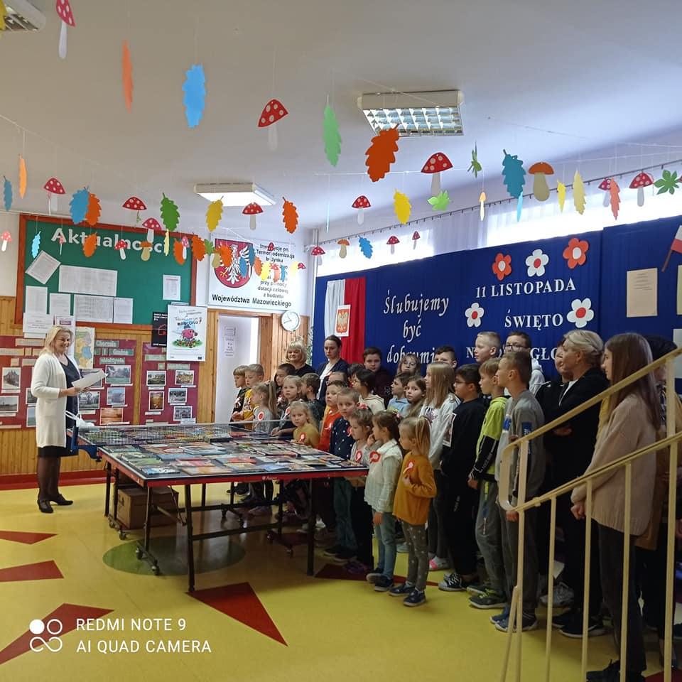 Młodszym uczniom wręczyła graficzne tabliczki mnożenia i naklejki na zeszyty. O znaczeniu czytania książek, wszystkim, przypominała przygotowana wystawa.