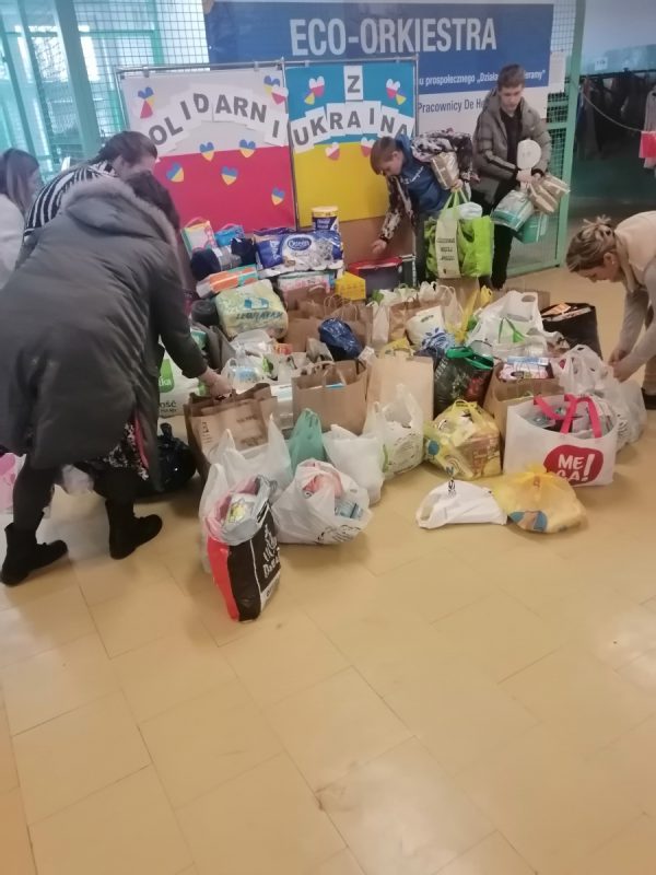 Zbiórka w szkole trwała tylko dwa dni ponieważ już w piątek musieliśmy przekazać zebrane artykuły do punktu zbiórki. Jednak nasi uczniowie i nauczyciele po raz kolejny udowodnili, że potrafią się szybko zaangażować w pomaganie. Zebraliśmy tak wiele potrzebnych, artykułów, że musieliśmy poprosić pracowników Urzędu Gminy o pomoc w przewiezieniu ich. Serdecznie dziękujemy Uczniom, Rodzicom oraz całej Radzie Pedagogicznej za okazaną otwartość i zaangażowanie w zbiórkę.