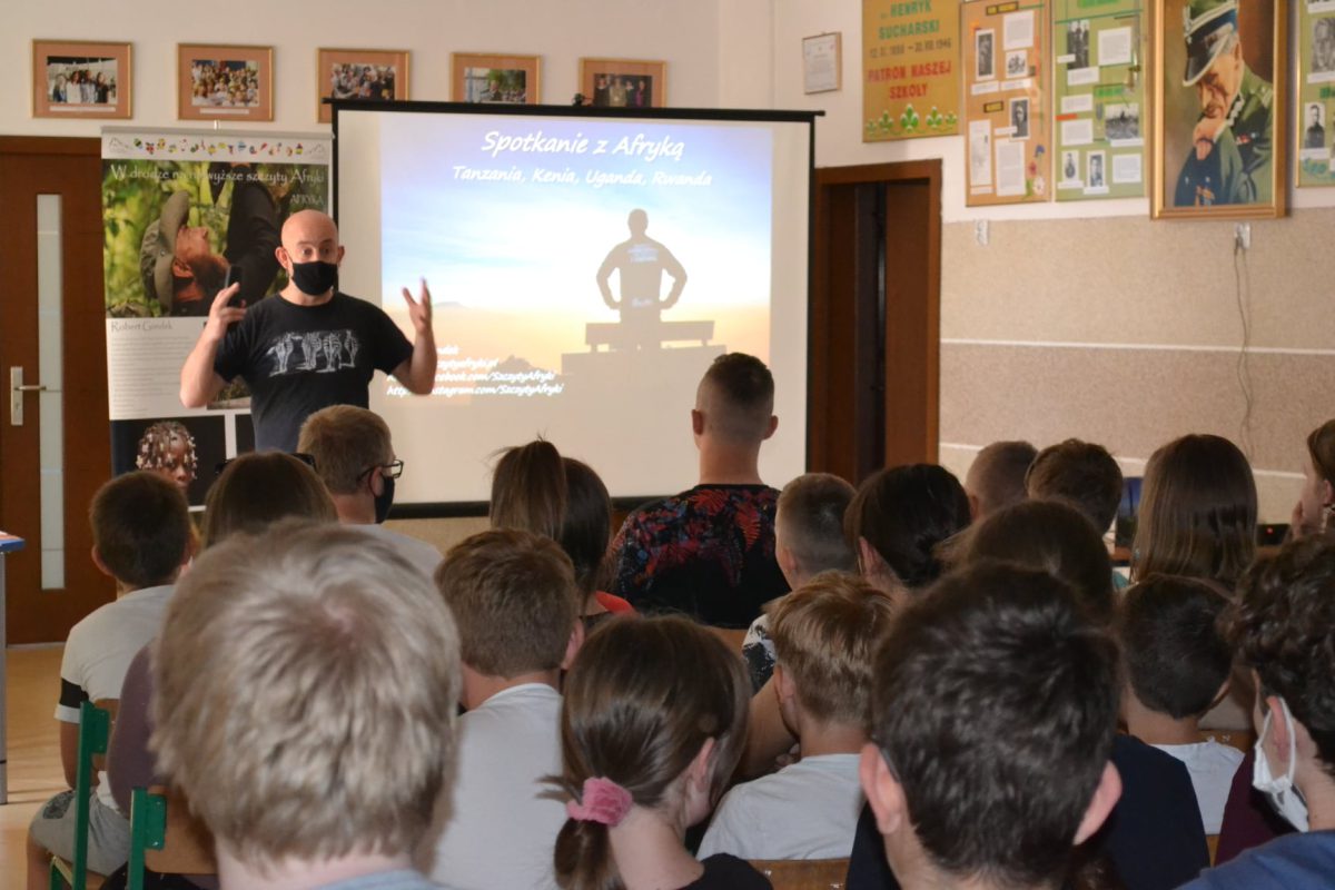 Z zaciekawieniem słuchano opowieści , śledząc prezentację multimedialną przedstawiającą odwiedzane miejsca i kraje. Pan Robert Gondek nauczył również kilku zwrotów w języku suahili.
